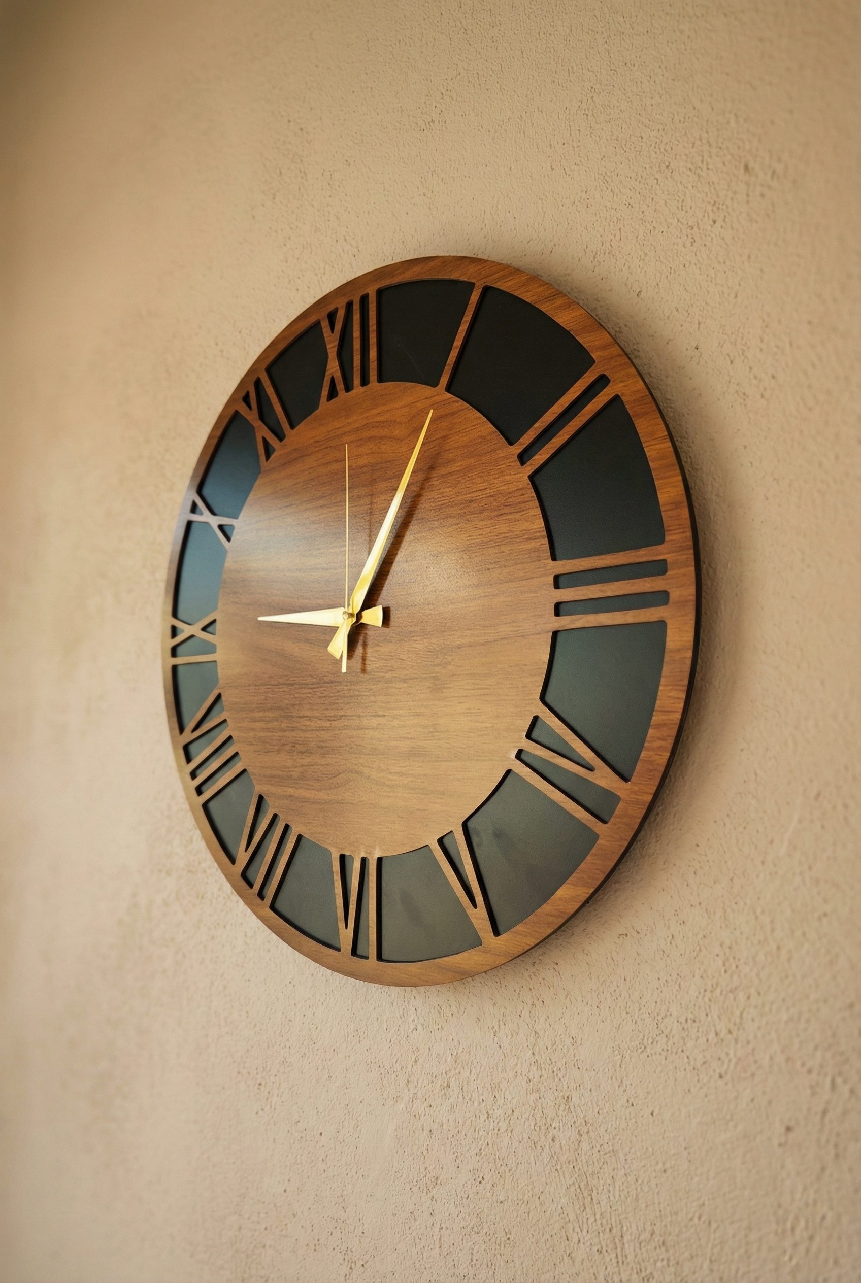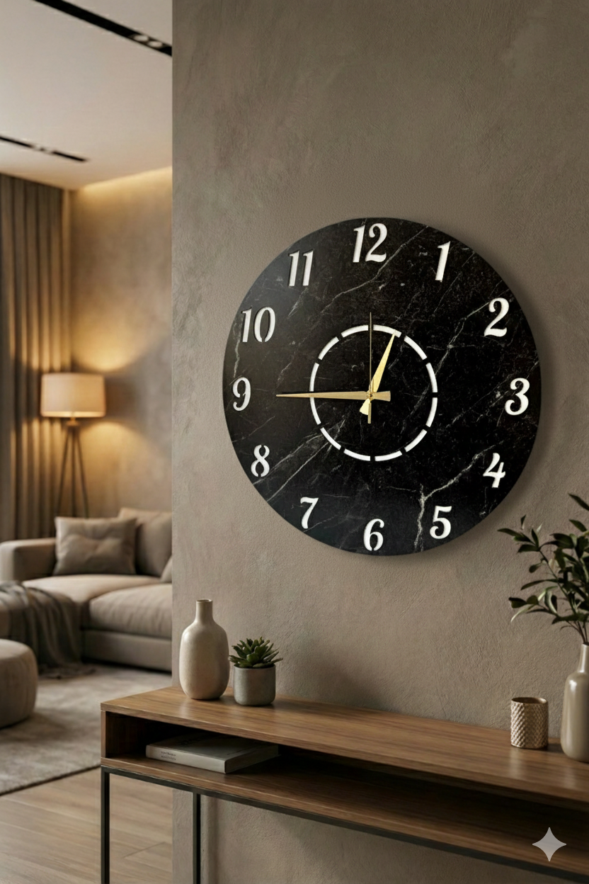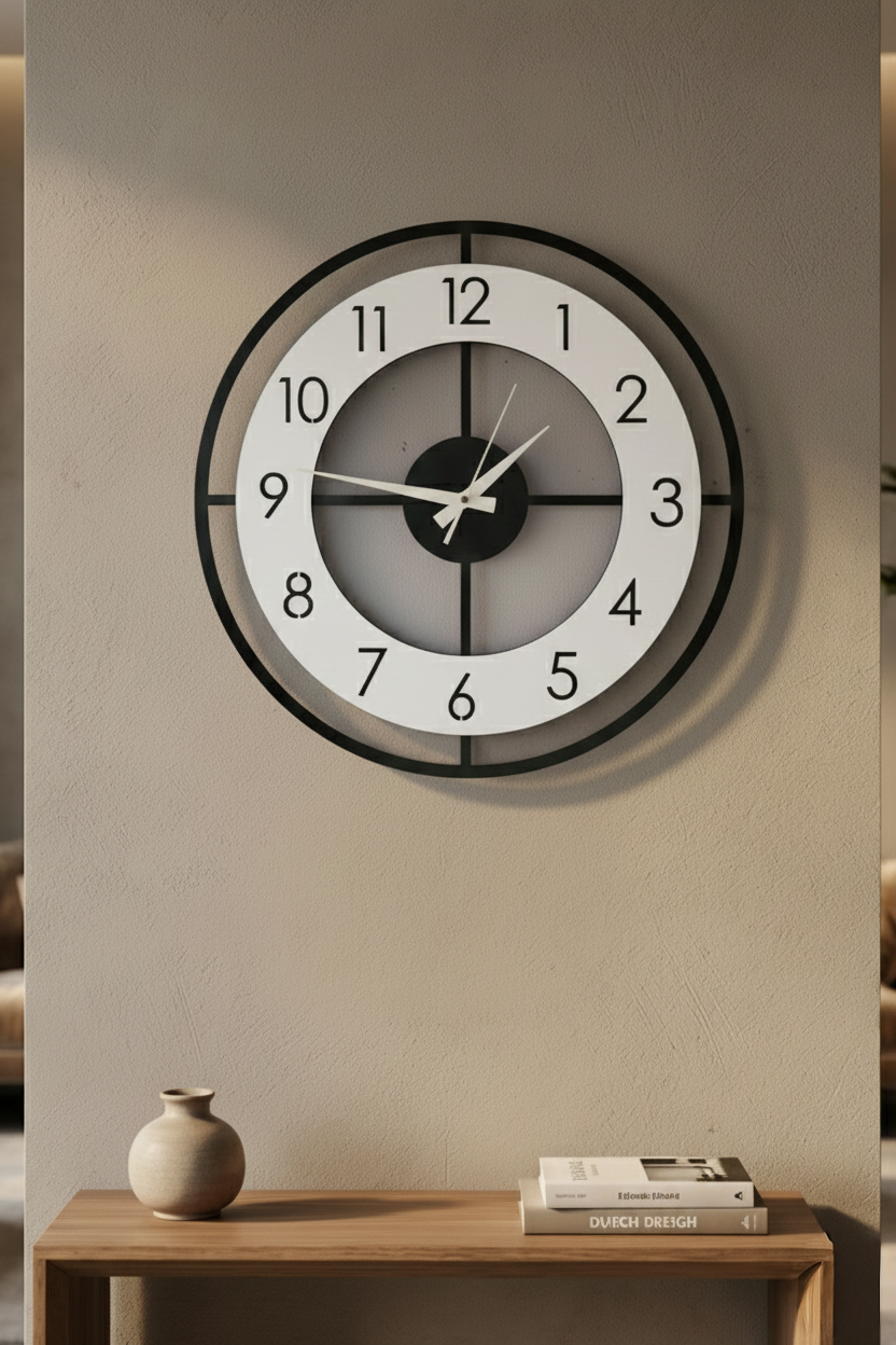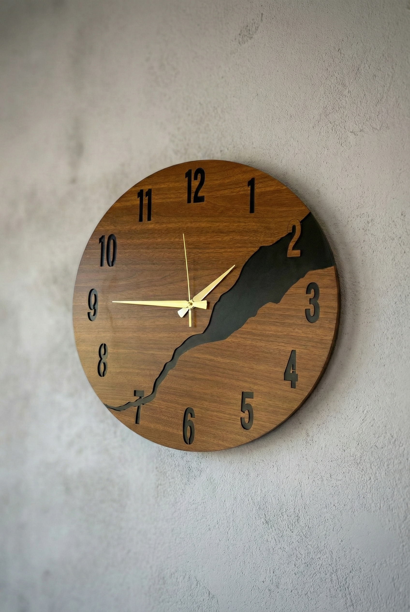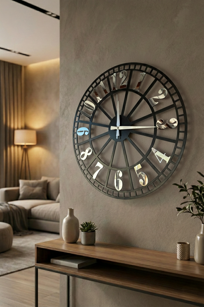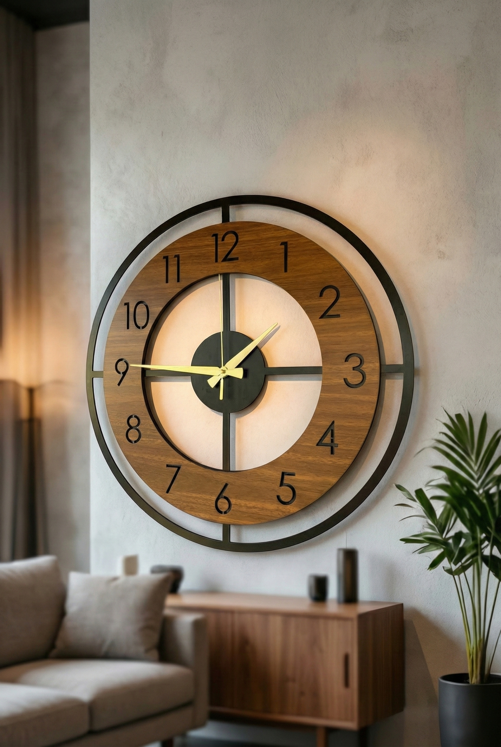 - Modern tasarımıyla dikkat çeken bu duvar saati, evinizin dekorasyonuna şık bir dokunuş ekler.; - Ceviz rengi ve asimetrik şekliyle göz alıcı bir görünüm sunar, mekanınıza sıcak ve doğal bir hava katar.; - 50 cm çapındaki geniş boyutu ile hem büyük duvarlarda hem de küçük alanlarda rahatlıkla kullanılabilir.; - Sessiz çalışma özelliği sayesinde gürültüsüz bir ortamda zamanı takip etmenizi sağlar.