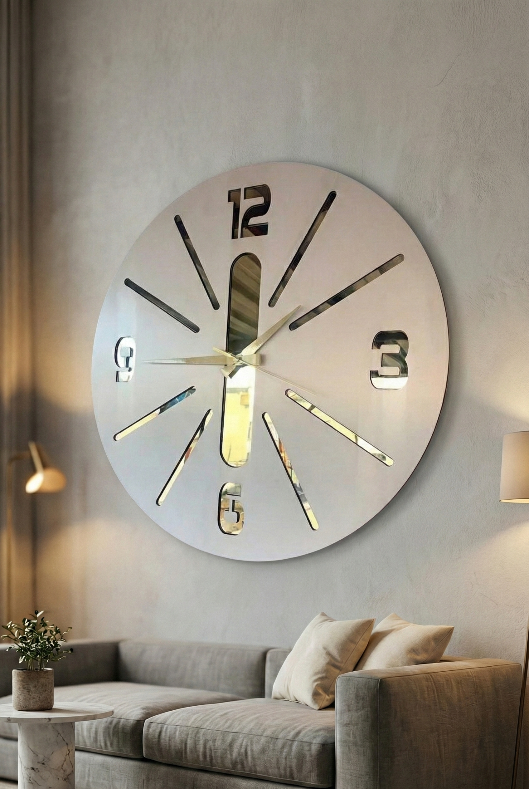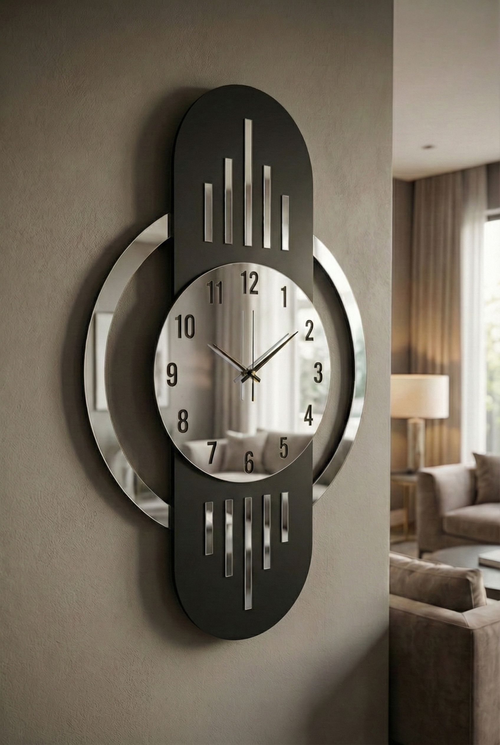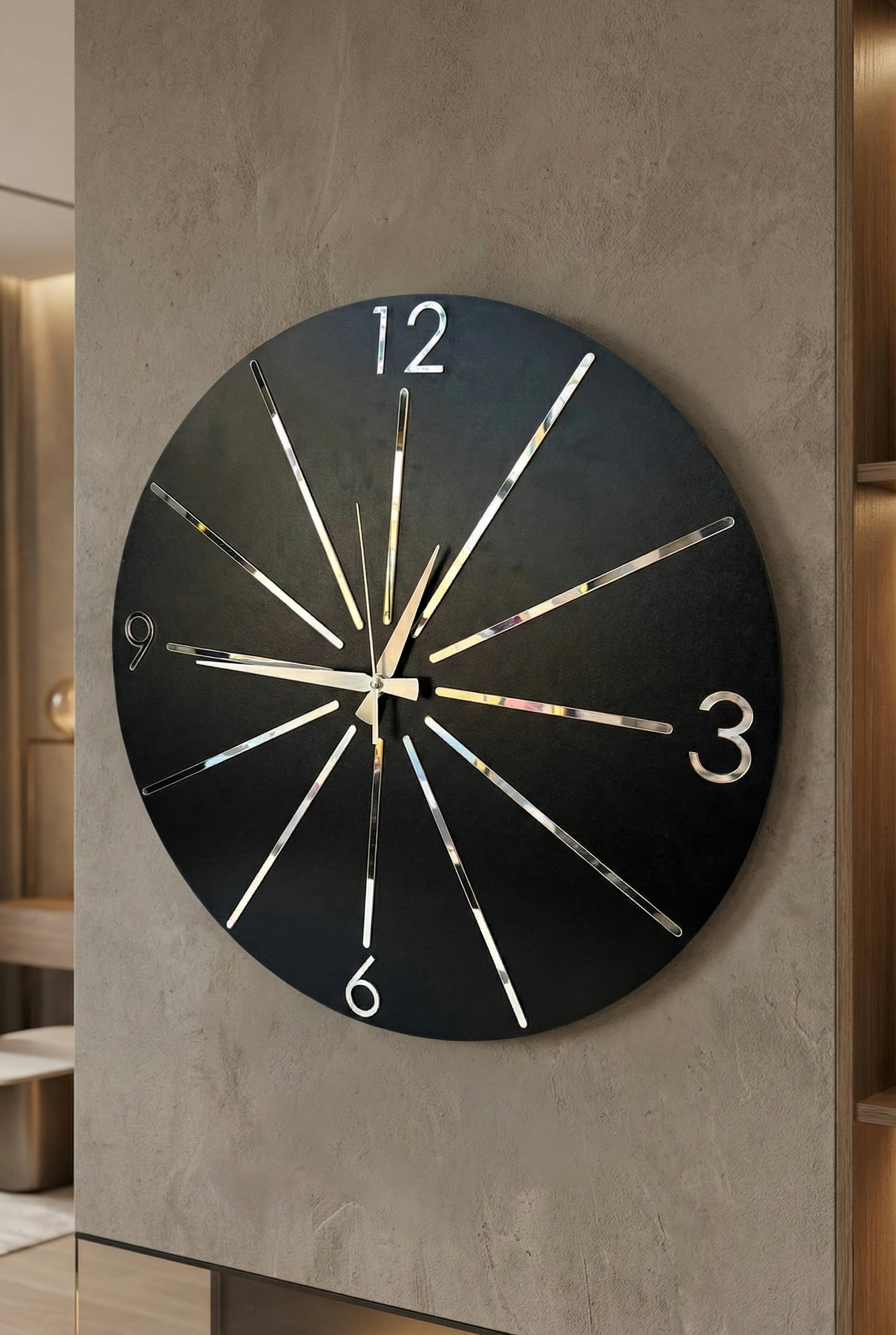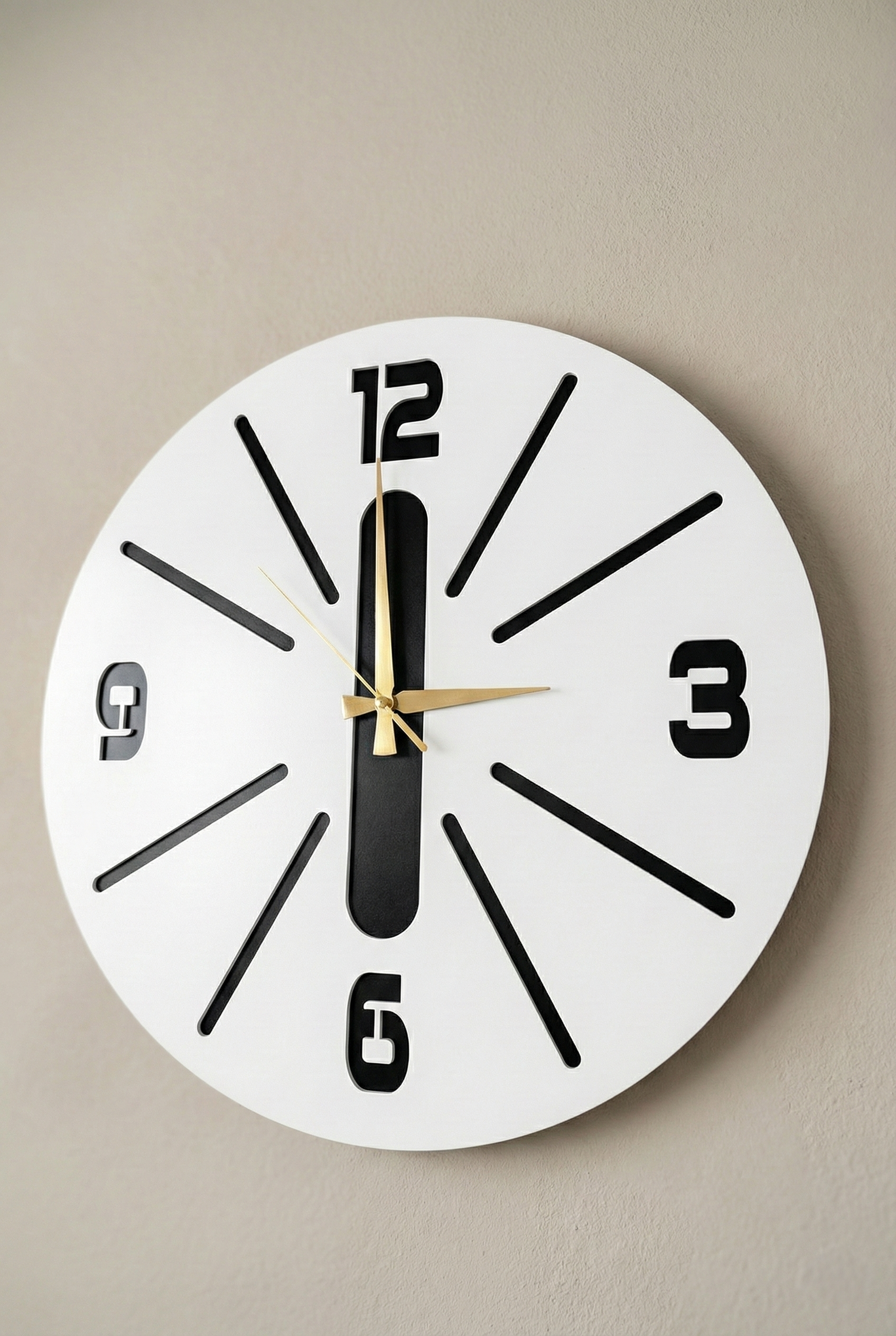 - Modern tasarımıyla dikkat çeken bu duvar saati, evinizin dekorasyonuna şık bir dokunuş ekler.; - Ceviz rengi ve asimetrik şekliyle göz alıcı bir görünüm sunar, mekanınıza sıcak ve doğal bir hava katar.; - 50 cm çapındaki geniş boyutu ile hem büyük duvarlarda hem de küçük alanlarda rahatlıkla kullanılabilir.; - Sessiz çalışma özelliği sayesinde gürültüsüz bir ortamda zamanı takip etmenizi sağlar.
