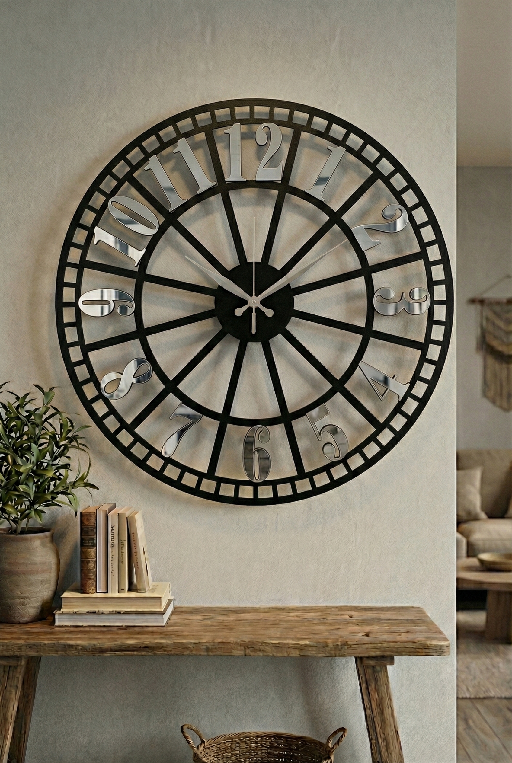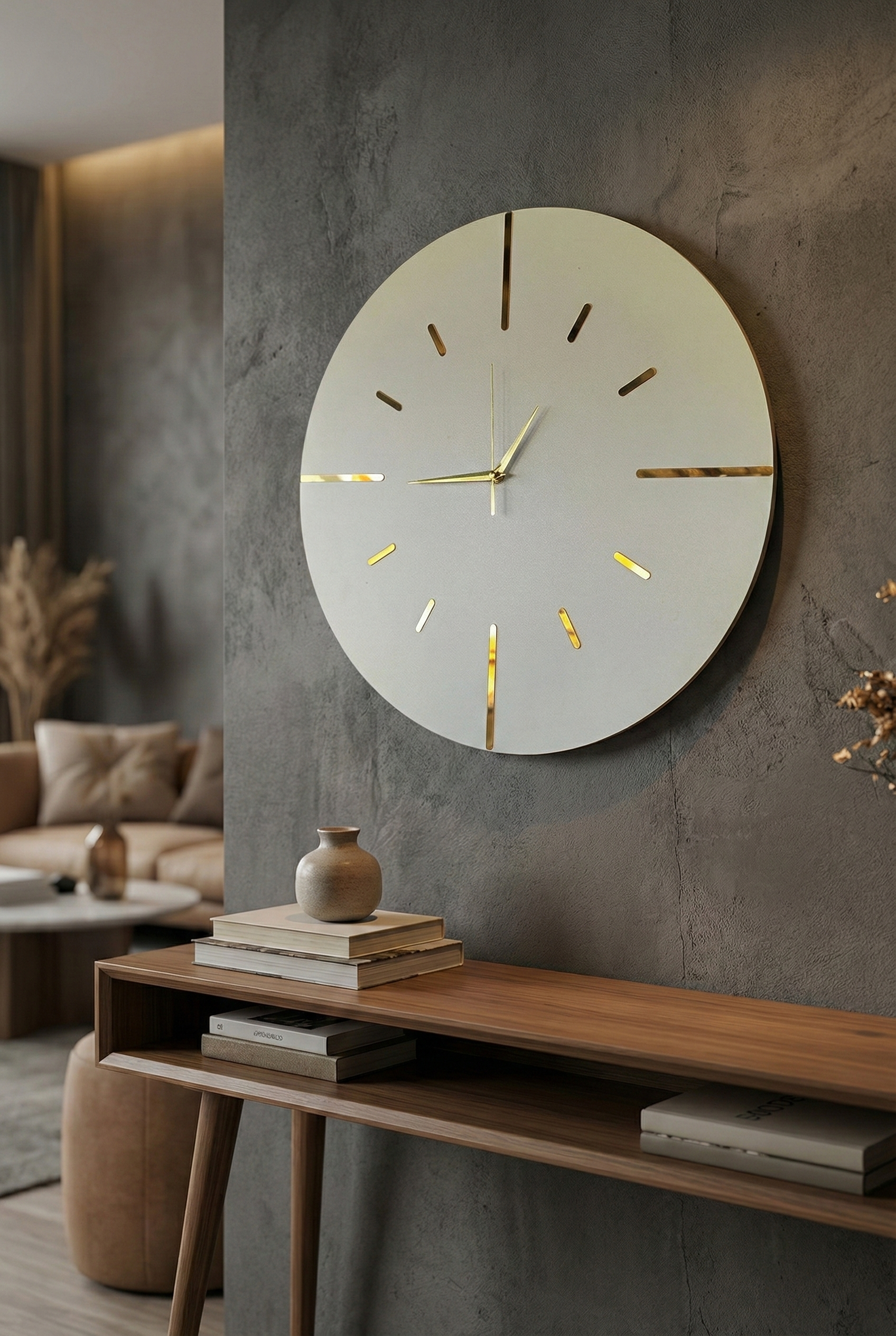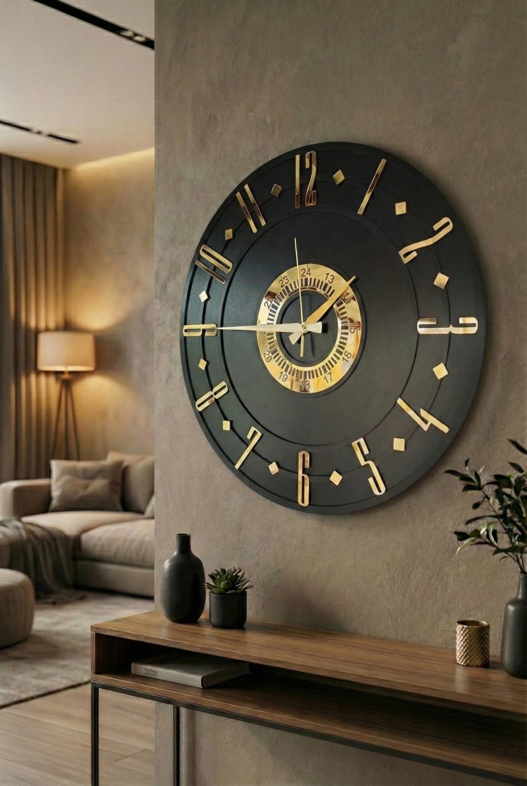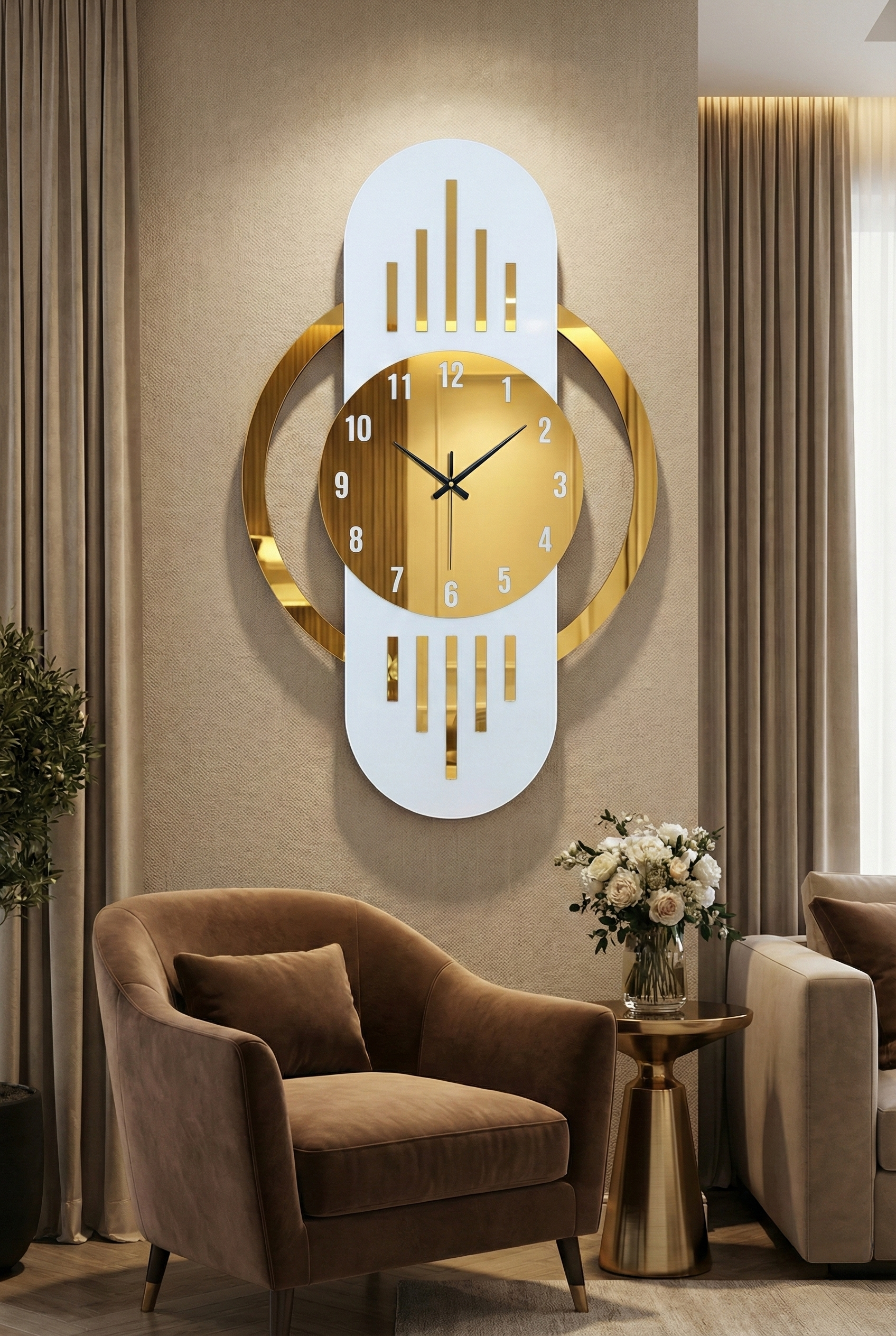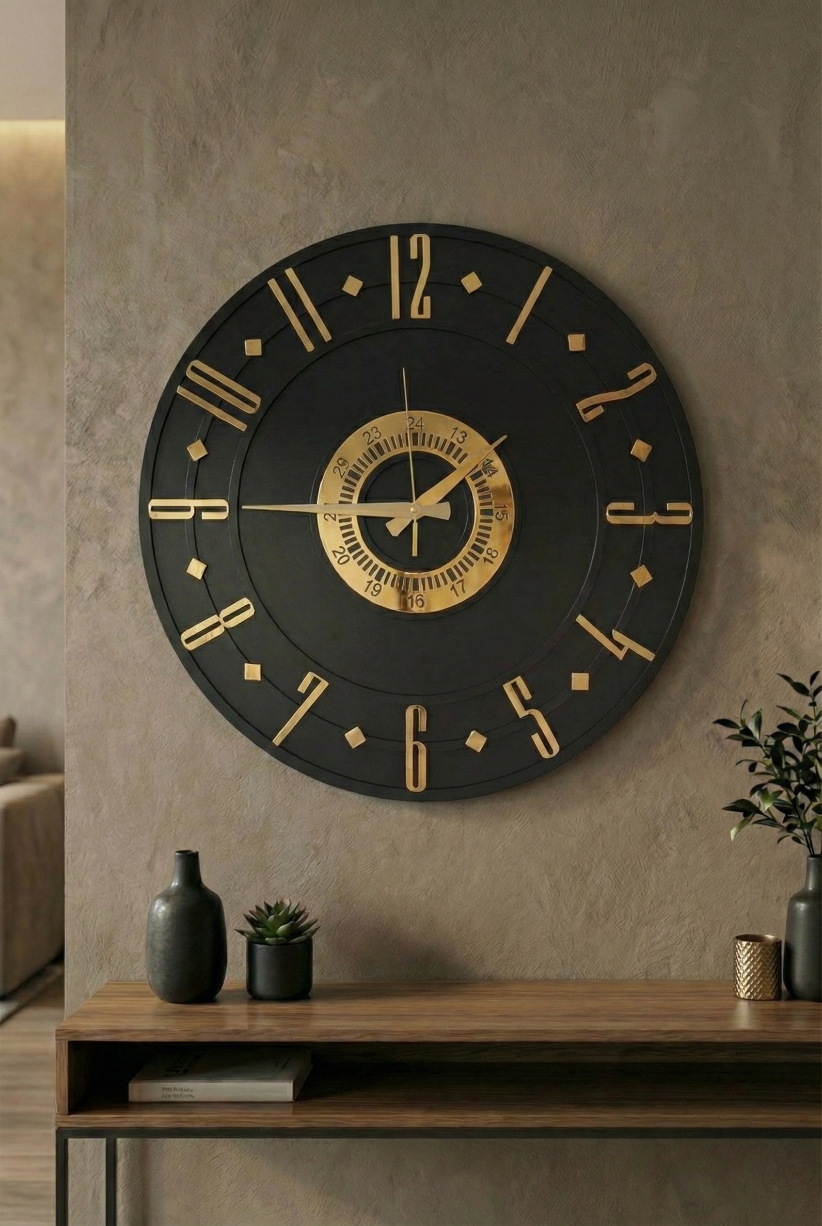 - Modern tasarımıyla dikkat çeken bu duvar saati, evinizin dekorasyonuna şık bir dokunuş ekler.; - Ceviz rengi ve asimetrik şekliyle göz alıcı bir görünüm sunar, mekanınıza sıcak ve doğal bir hava katar.; - 50 cm çapındaki geniş boyutu ile hem büyük duvarlarda hem de küçük alanlarda rahatlıkla kullanılabilir.; - Sessiz çalışma özelliği sayesinde gürültüsüz bir ortamda zamanı takip etmenizi sağlar.
