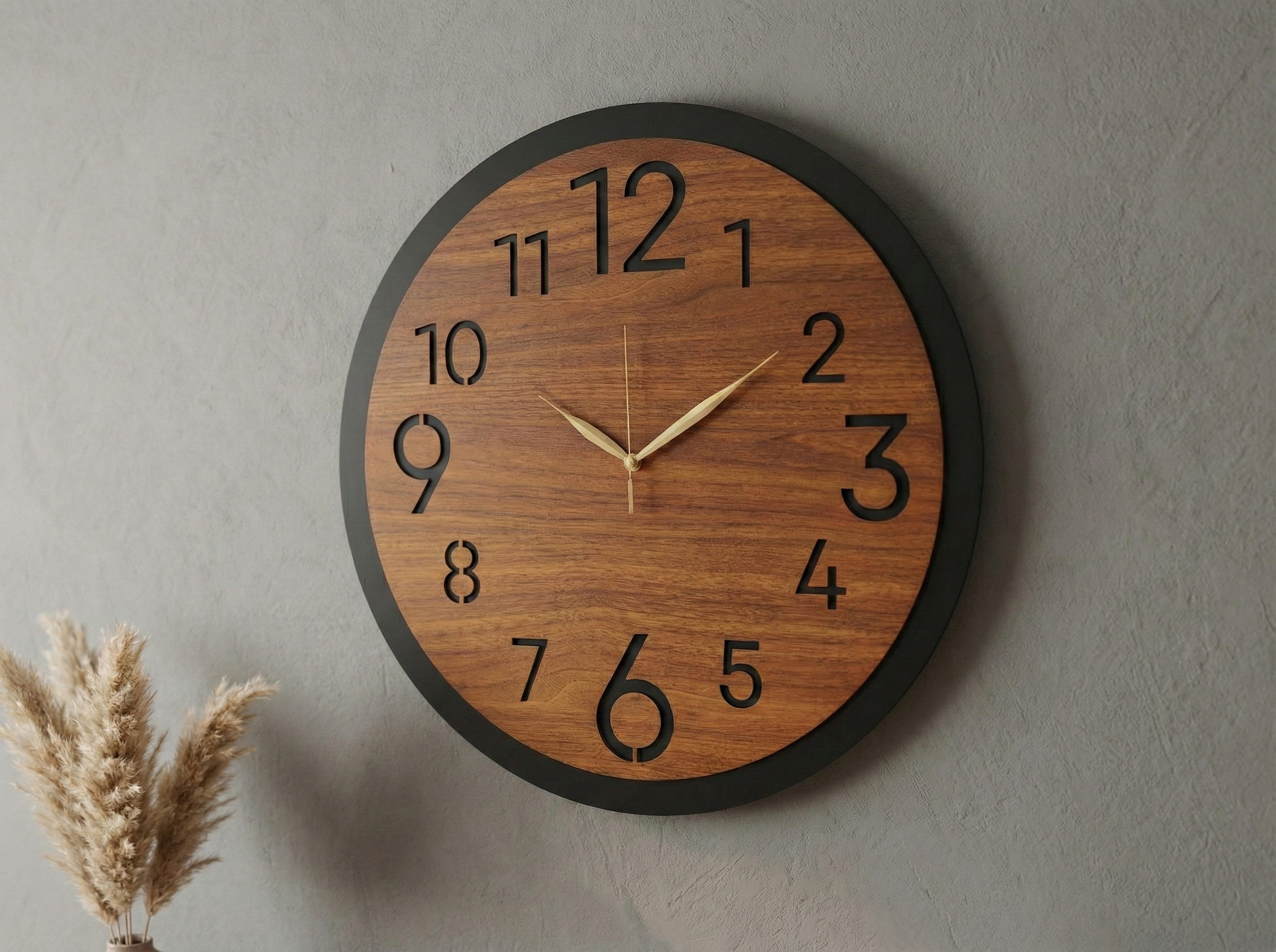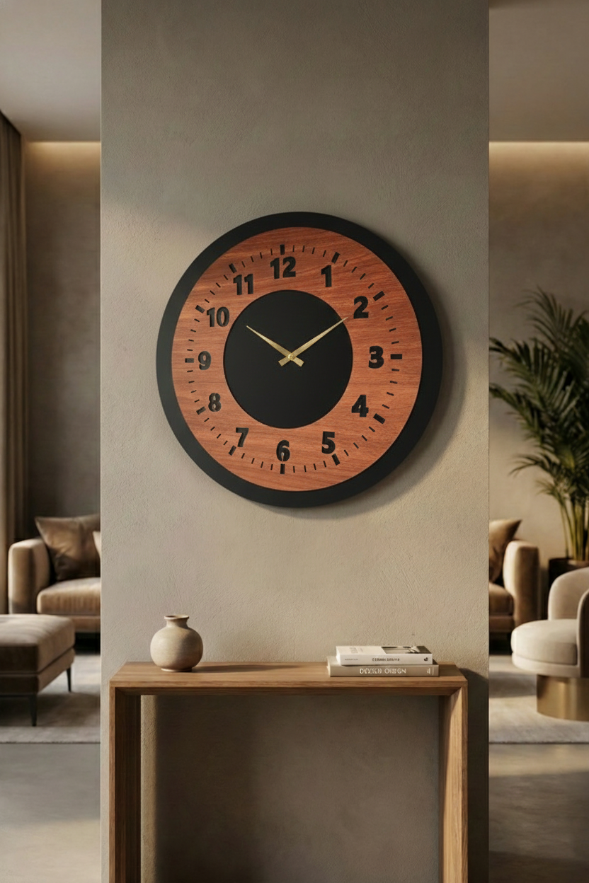 Ahşap Ceviz Mobilya Renk Desenli Hediyelik Sessiz Duvar Saati 50cm