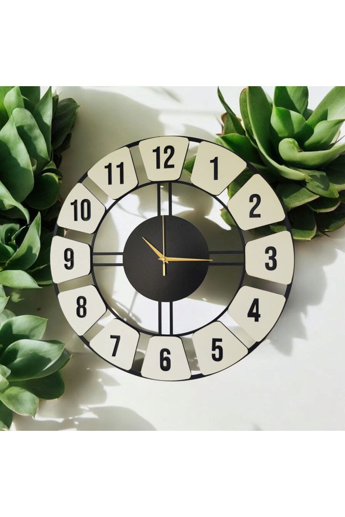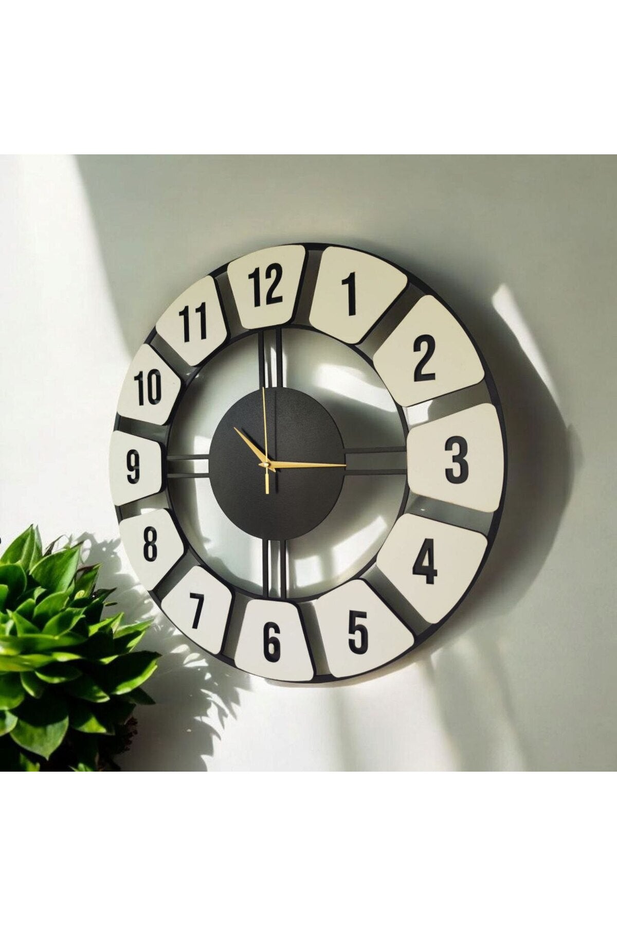 Ahşap Siyah Beyaz Renk Desenli Sayılı Hediyelik Sessiz Duvar Saati 50cm