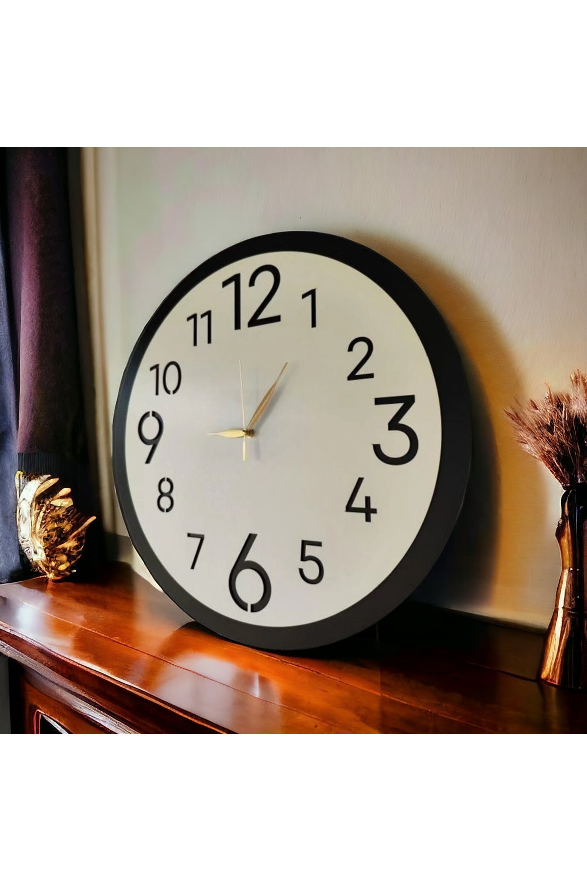Ahşap Siyah Beyaz Renk Sade Sayılı Hediyelik Sessiz Duvar Saati 50cm