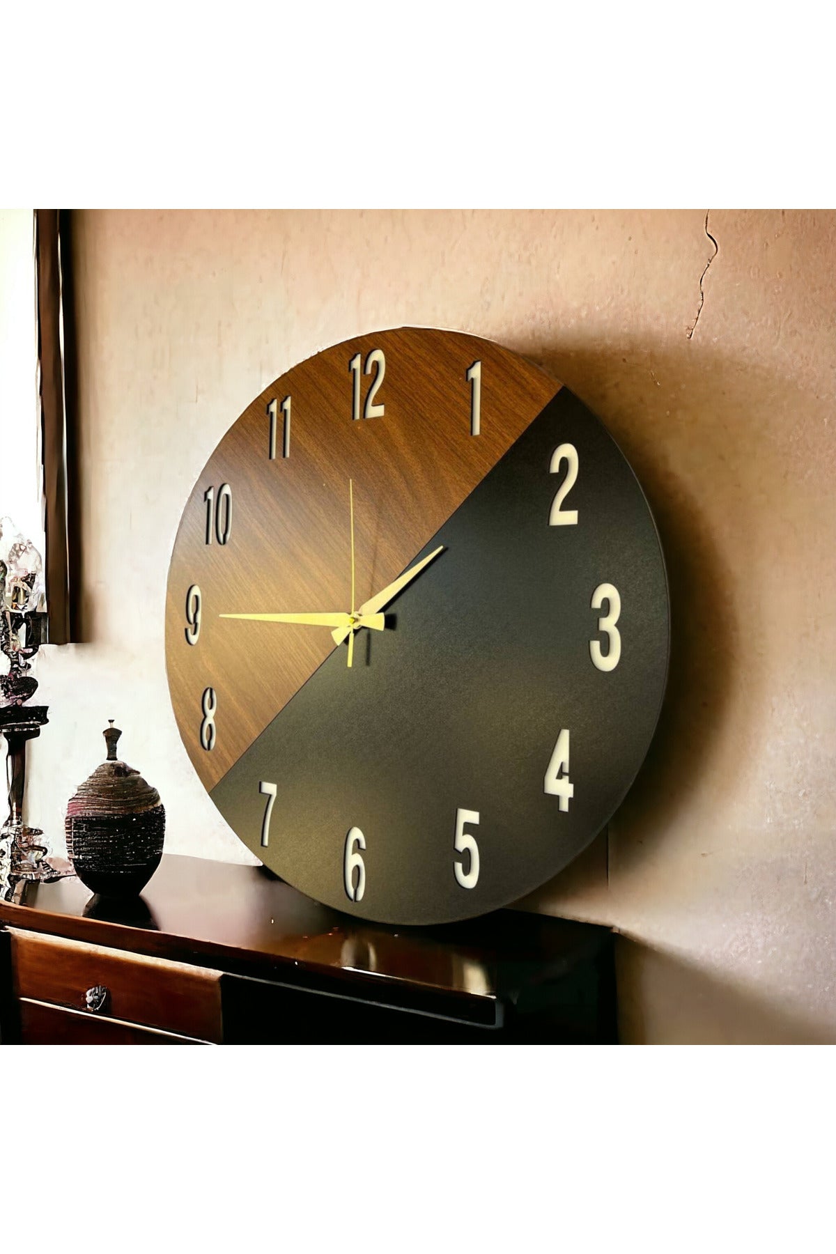 Ahşap Siyah Ceviz Mobilya Renk Desenli Hediyelik Sessiz Duvar Saati 50cm