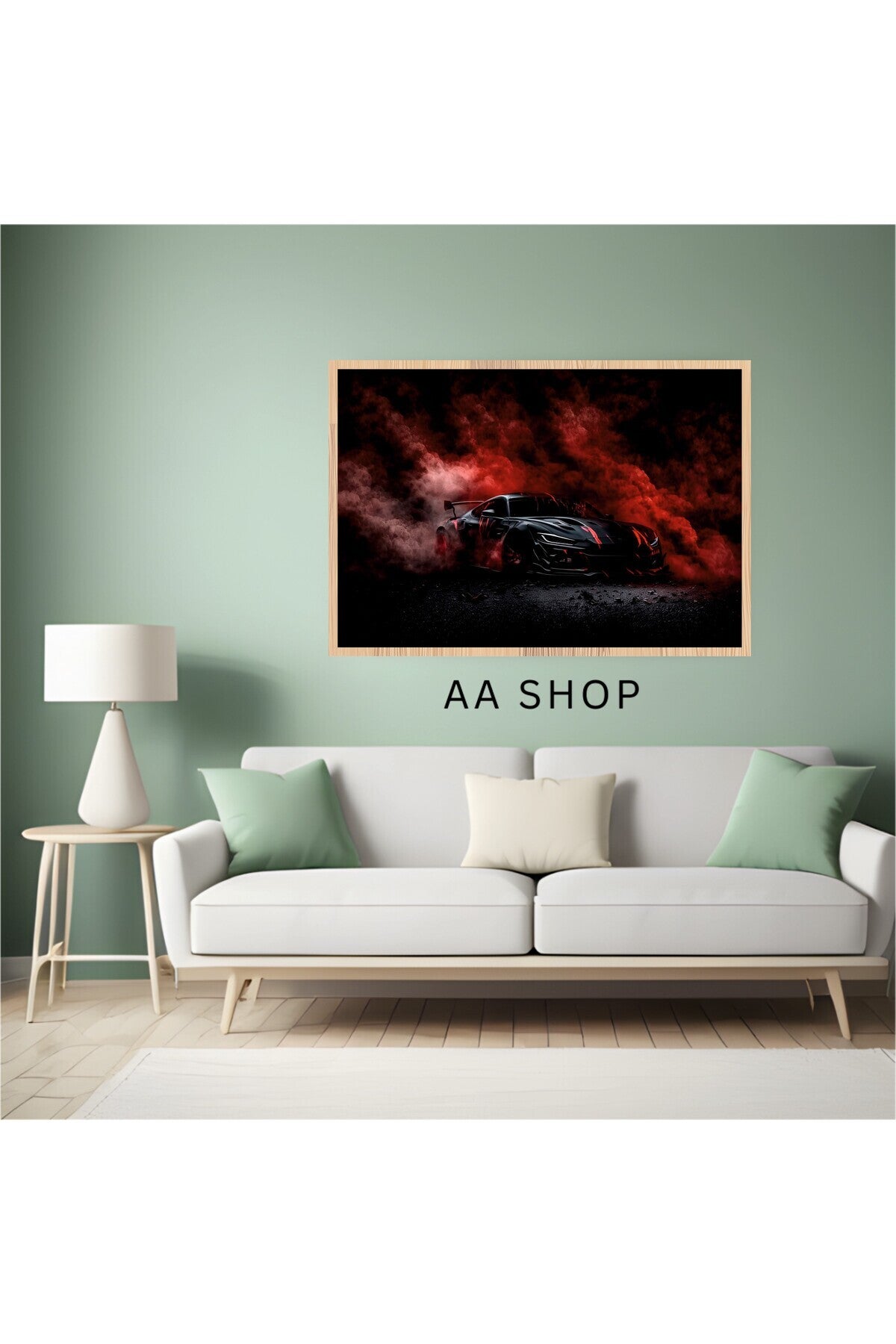Araba Büyük Boy Renkli Solmaz Kaliteli Baskı Çerçeve Görünümlü MDF Tablo 70x50cm 148