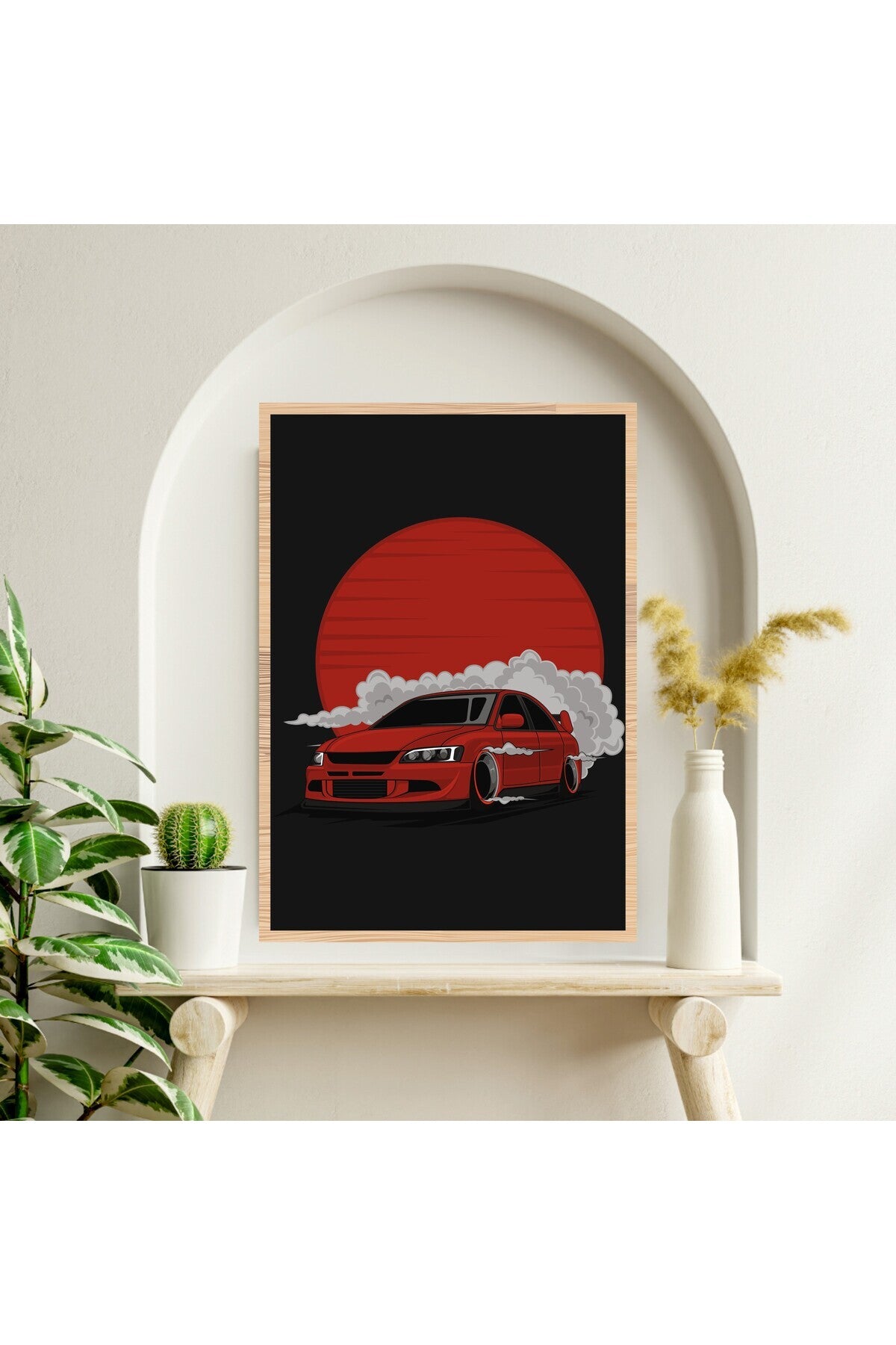 Araba Drift Büyük Boy Renkli Solmaz Kaliteli Baskı Çerçeve Görünümlü MDF Tablo 70x50cm 255