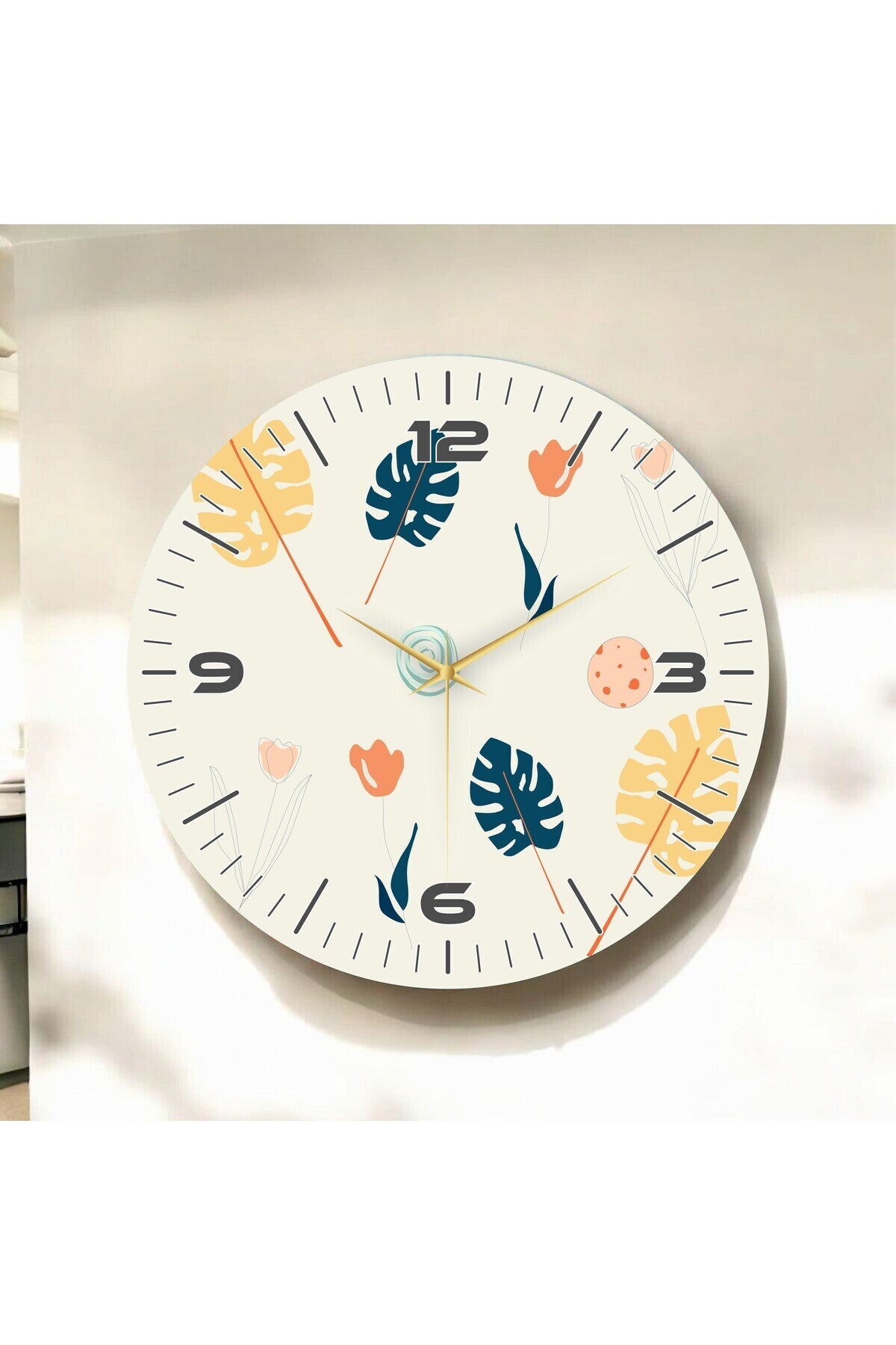 Beyaz Renkli Baskı Yaprak Desenli Sayılı Hediyelik Ahşap Sessiz Tablo Duvar Saati