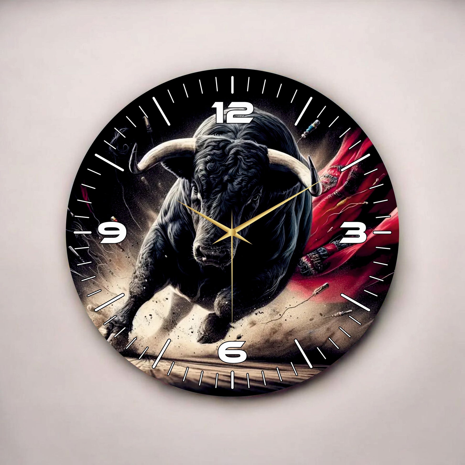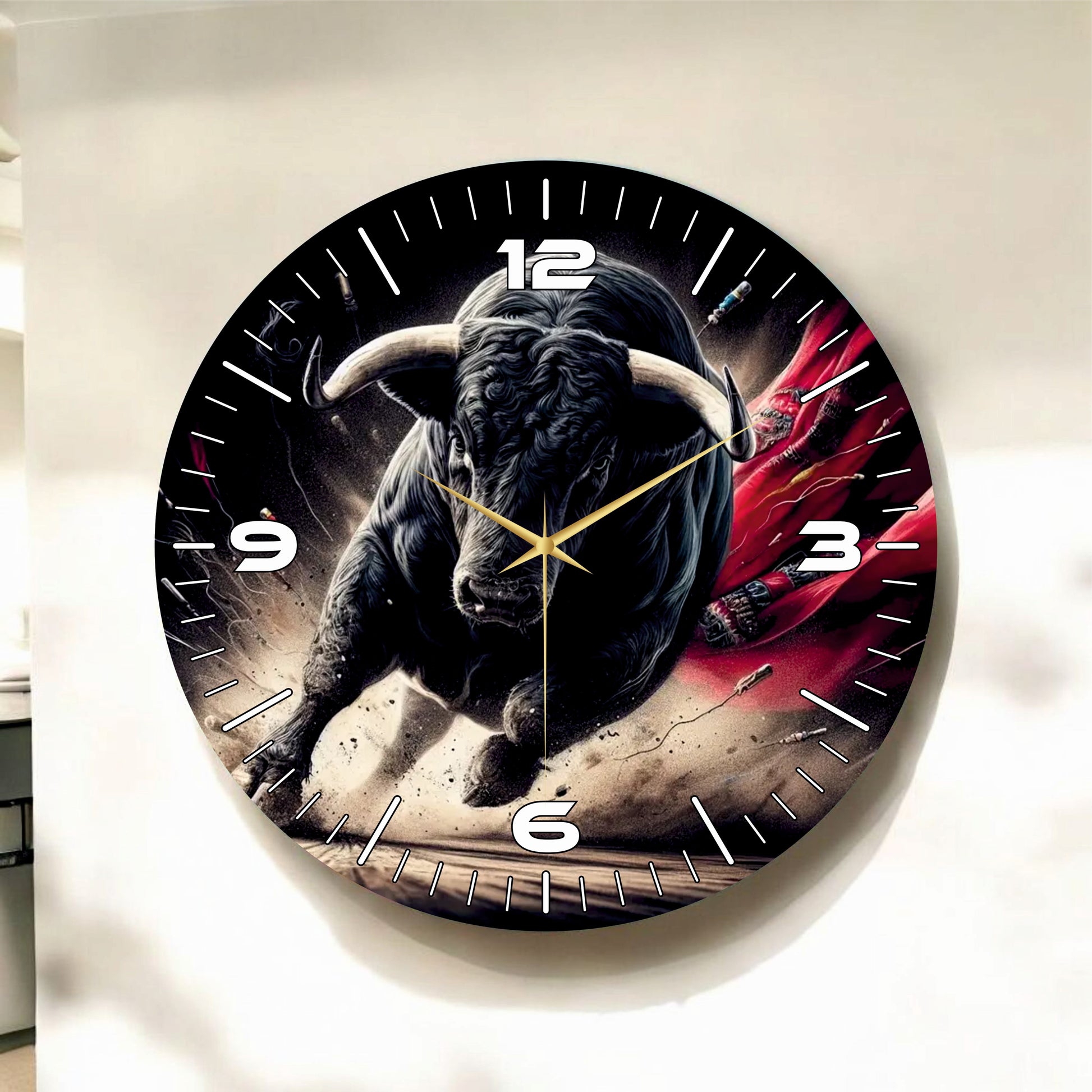 Boğa Hayvanlı Siyah Renkli Baskı Desenli Sayılı Hediyelik Ahşap Sessiz Tablo Duvar Saati
