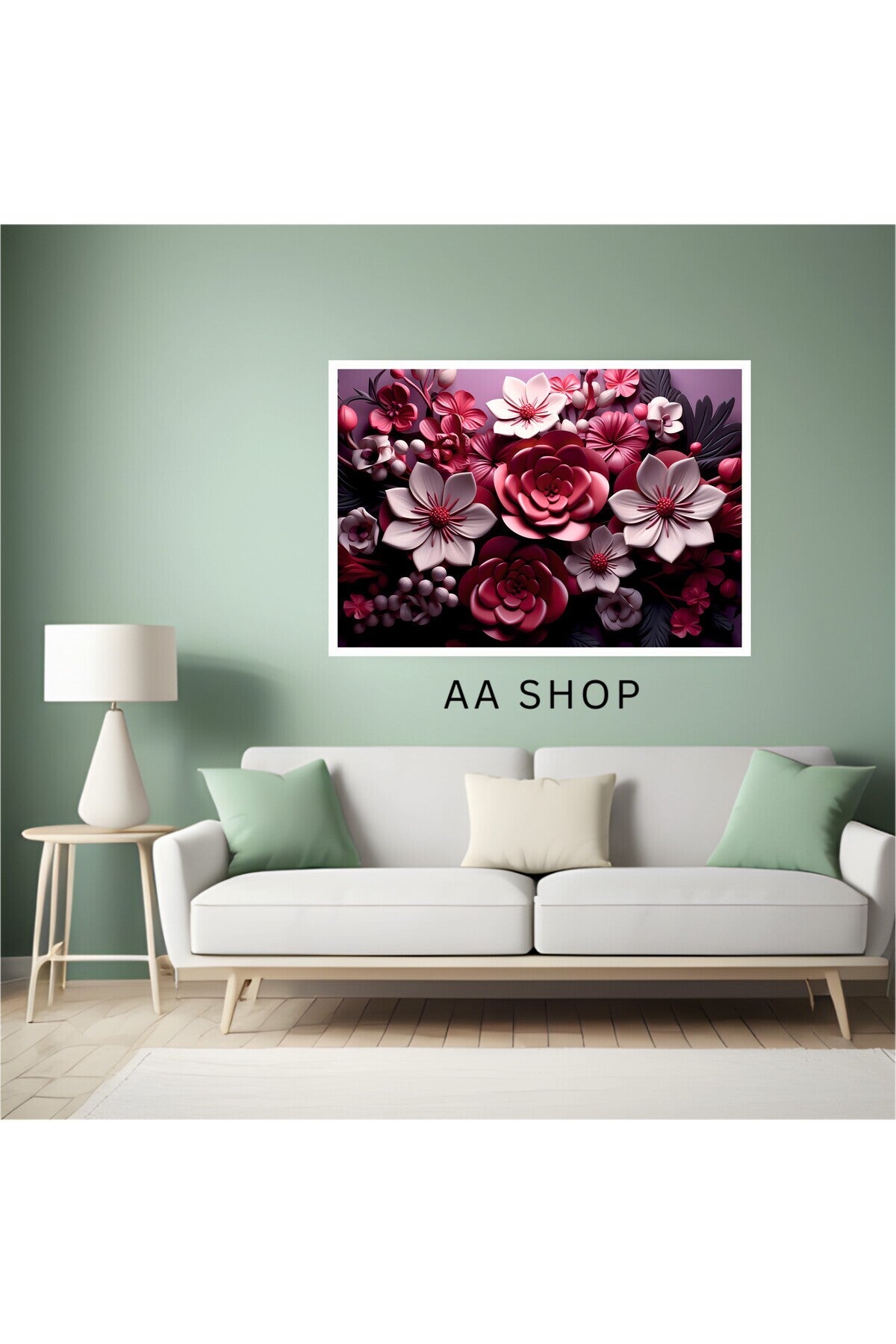 Çiçek Büyük Boy Renkli Solmaz Kaliteli Baskı Çerçeve Görünümlü MDF Tablo 70x50cm 102