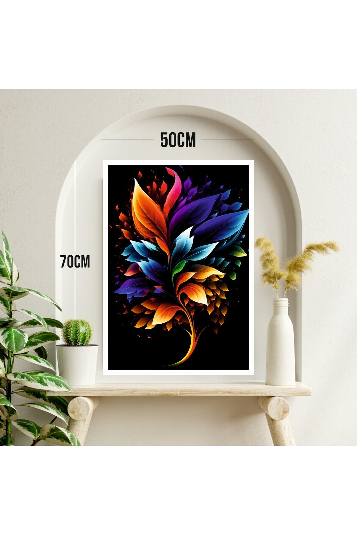 Çiçek Büyük Boy Renkli Solmaz Kaliteli Baskı Çerçeve Görünümlü MDF Tablo 70x50cm 156