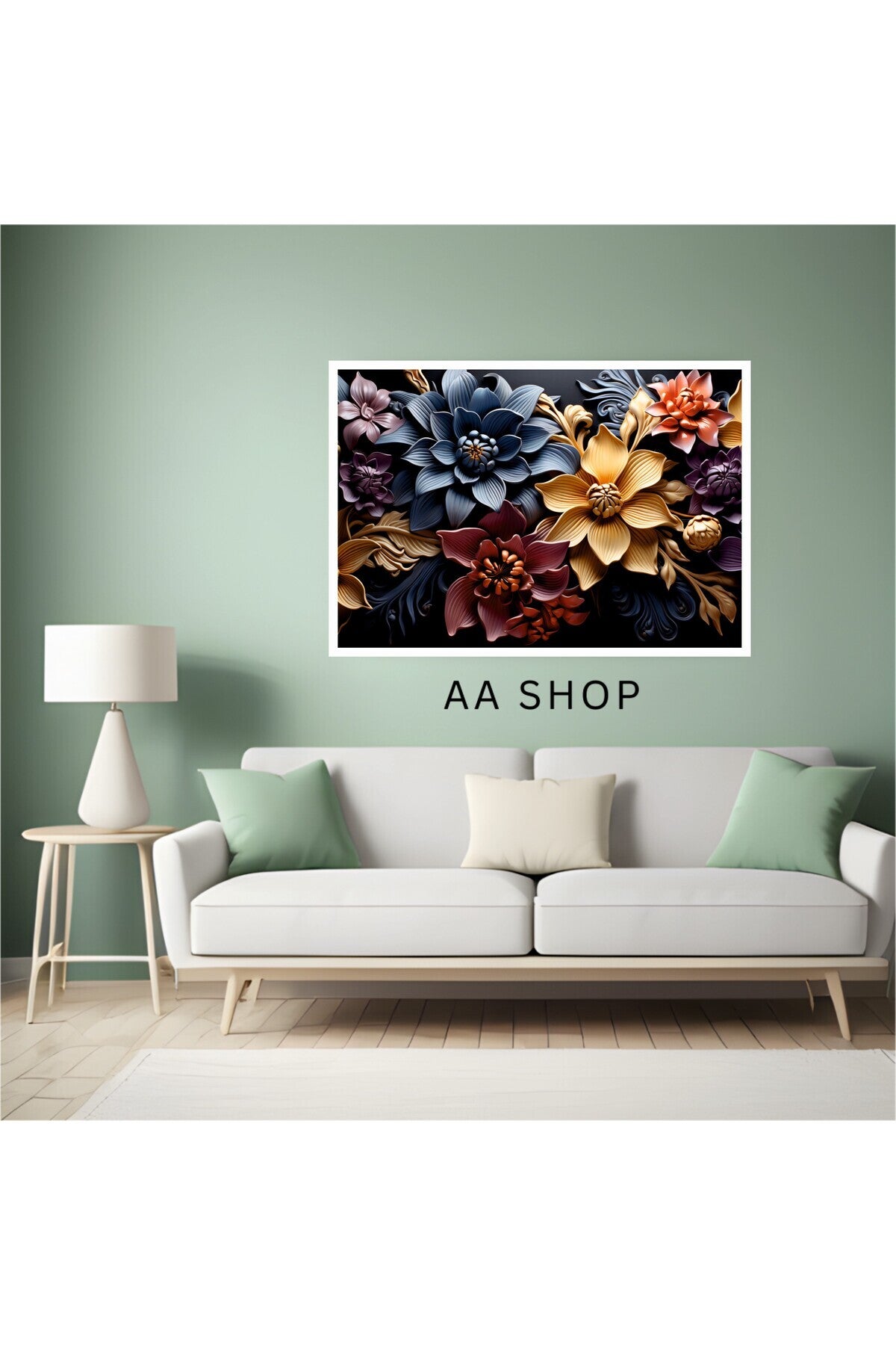 Çiçek Doğa Büyük Boy Renkli Solmaz Kaliteli Baskı Çerçeve Görünümlü MDF Tablo 70x50cm 33