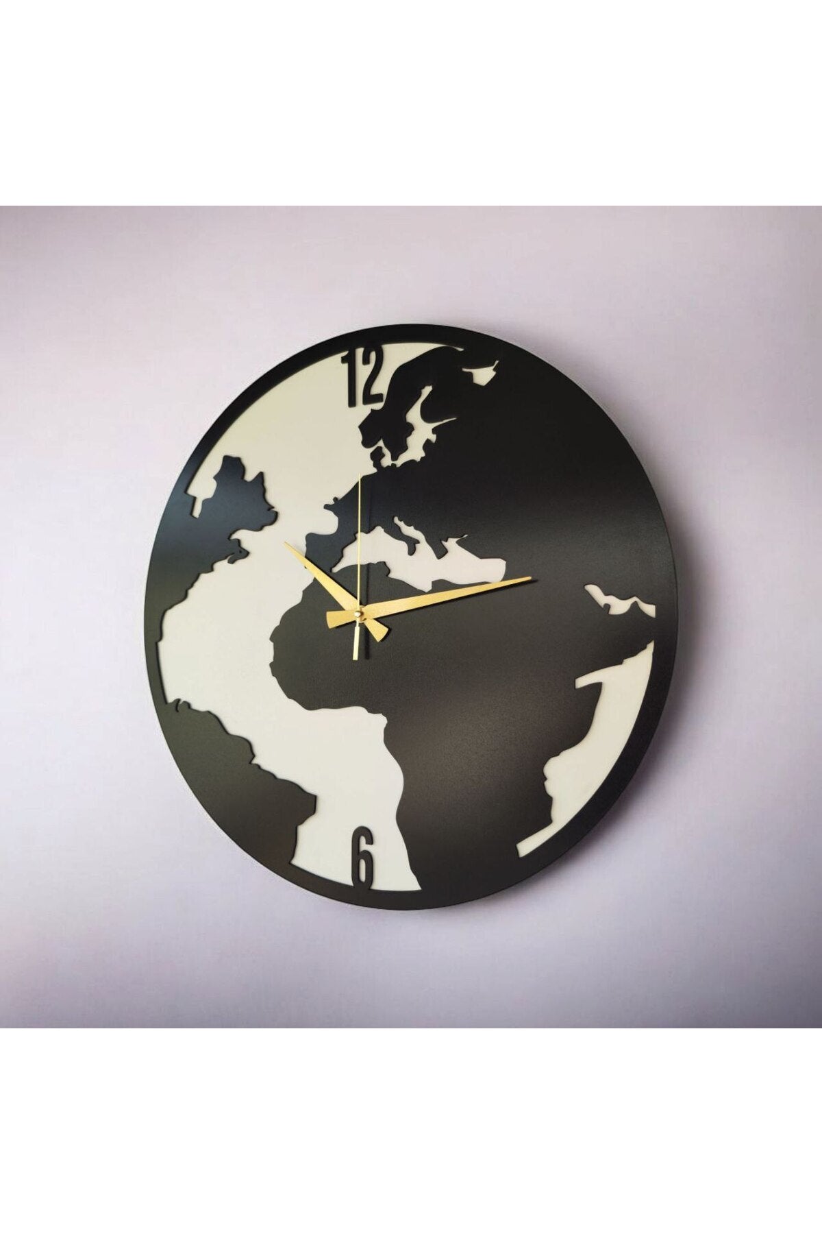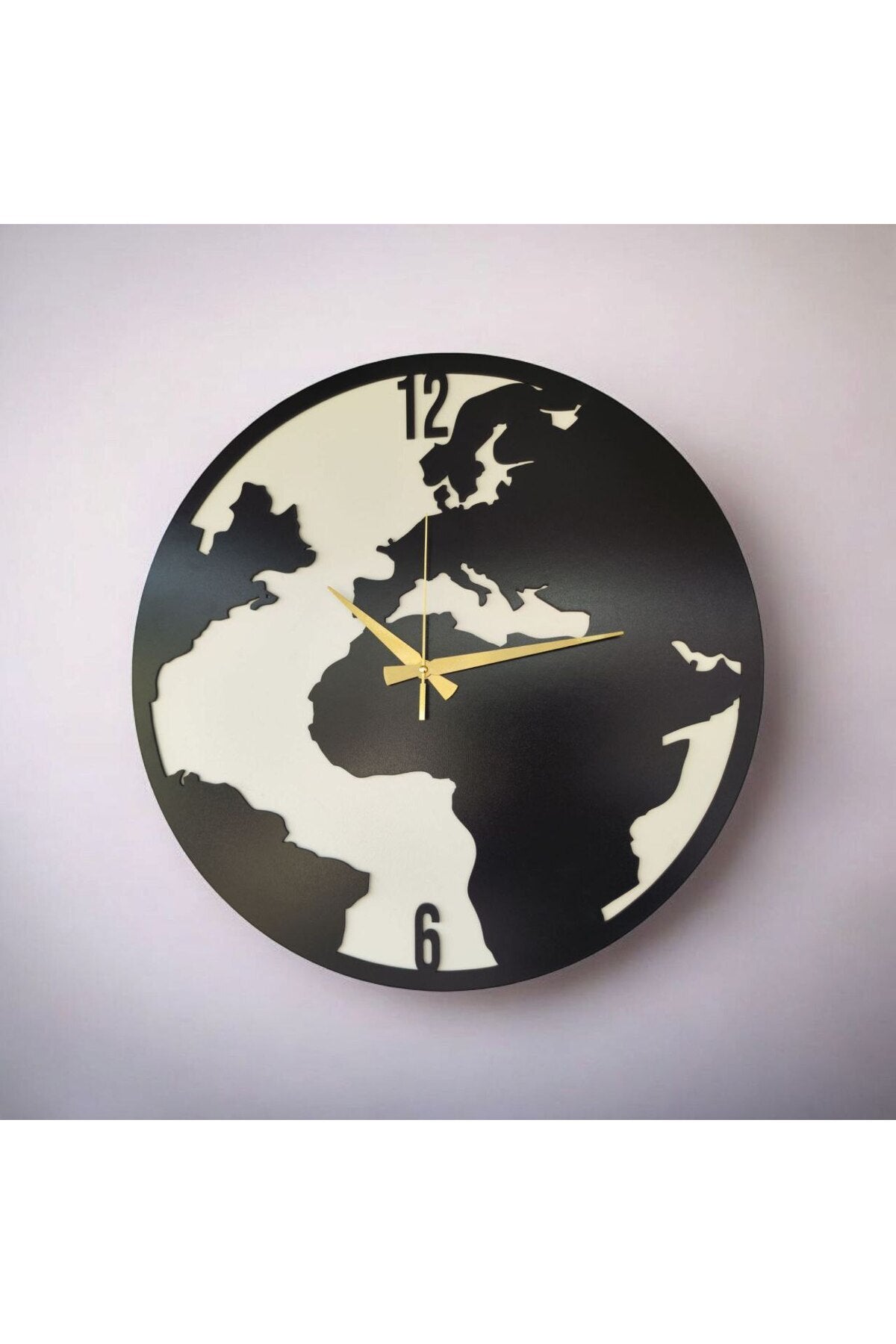 Dünya Haritası Ahşap Siyah Renk Sade Sayılı Hediyelik Sessiz Duvar Saati 50cm