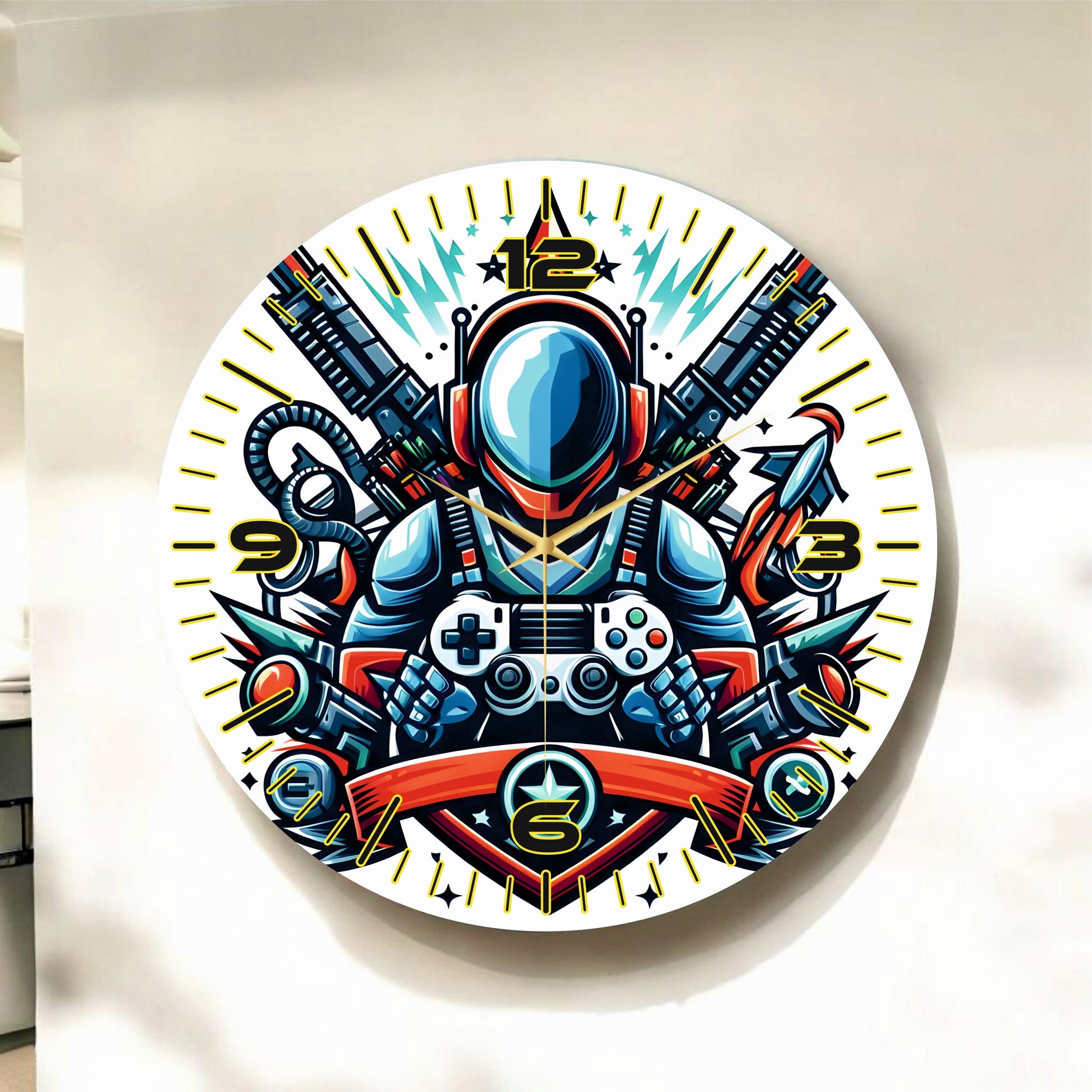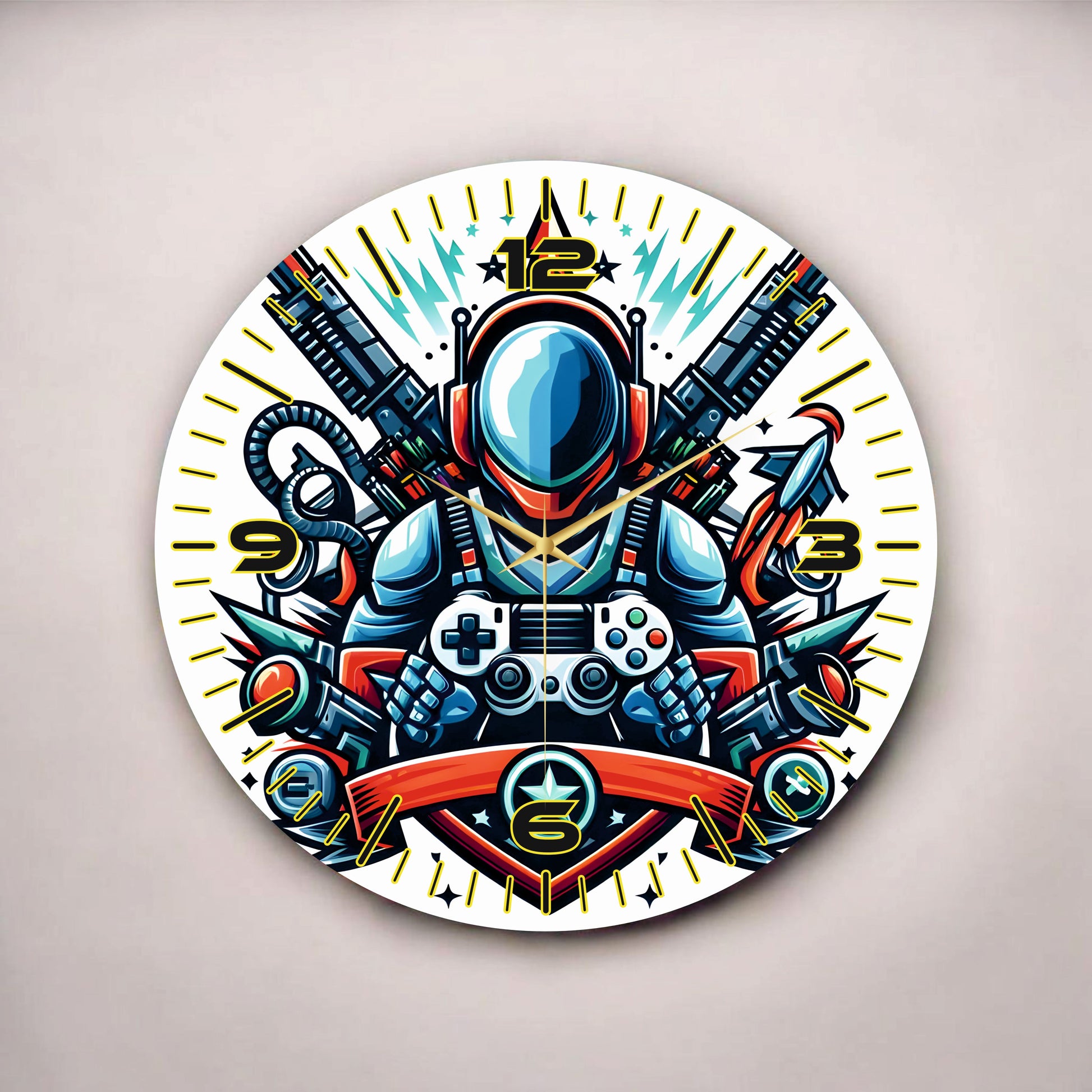 Gamer Oyuncu Renkli Baskı Desenli Sayılı Hediyelik Ahşap Sessiz Tablo Duvar Saati