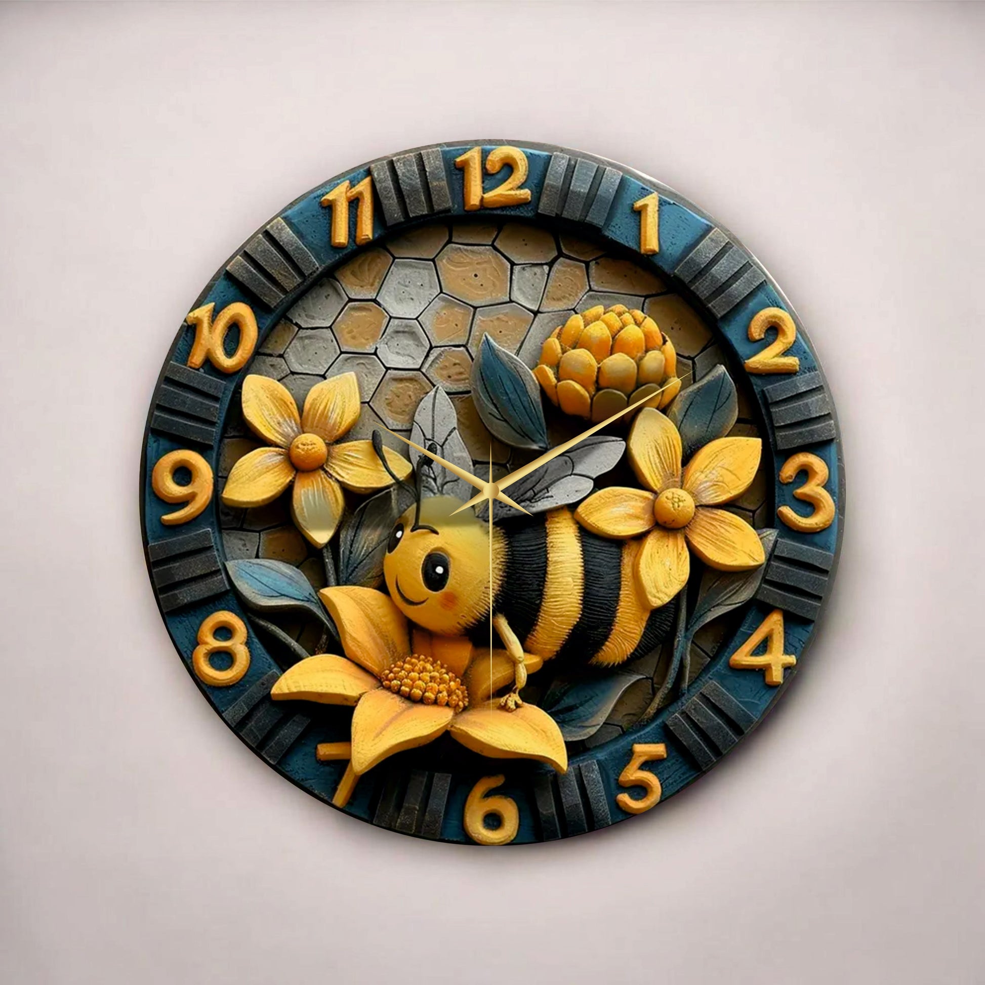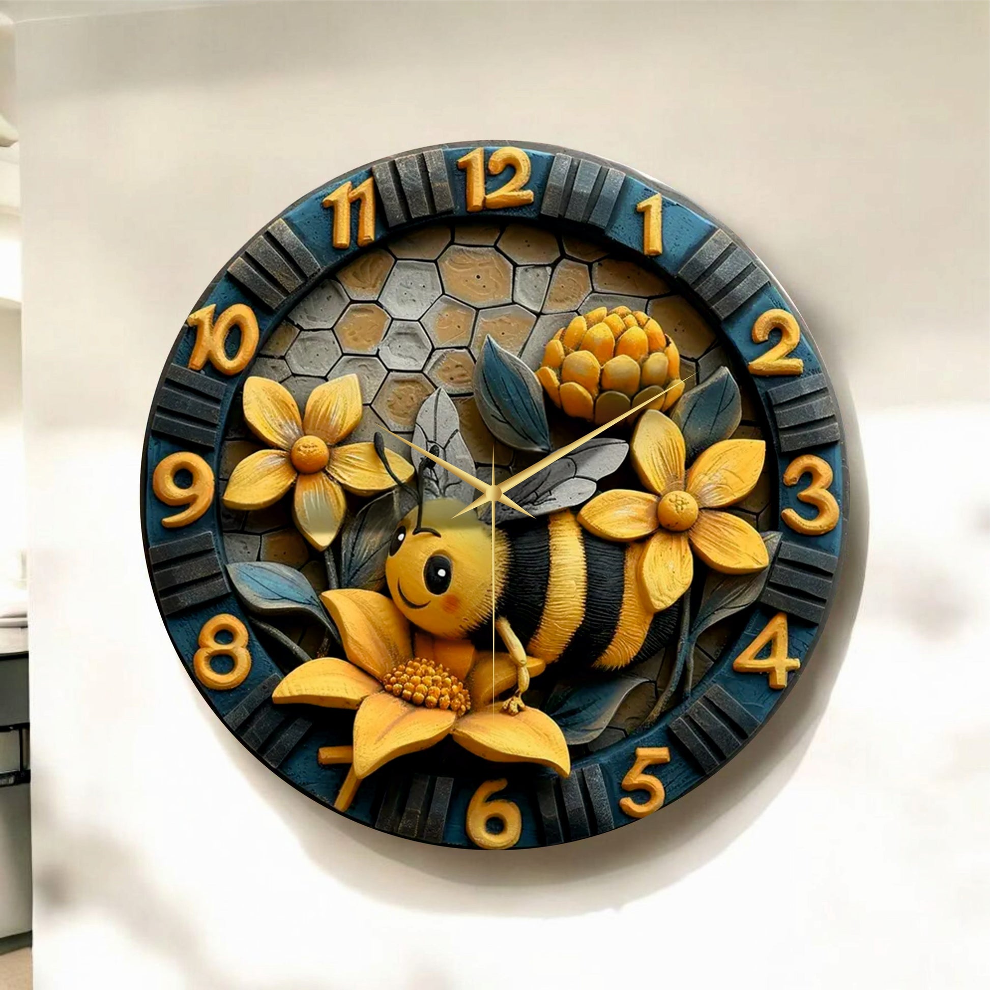 Kabartma Görünümlü Renkli Arı Çiçek Çocuk Desenli Sayılı Hediyelik Ahşap Sessiz Duvar Saati