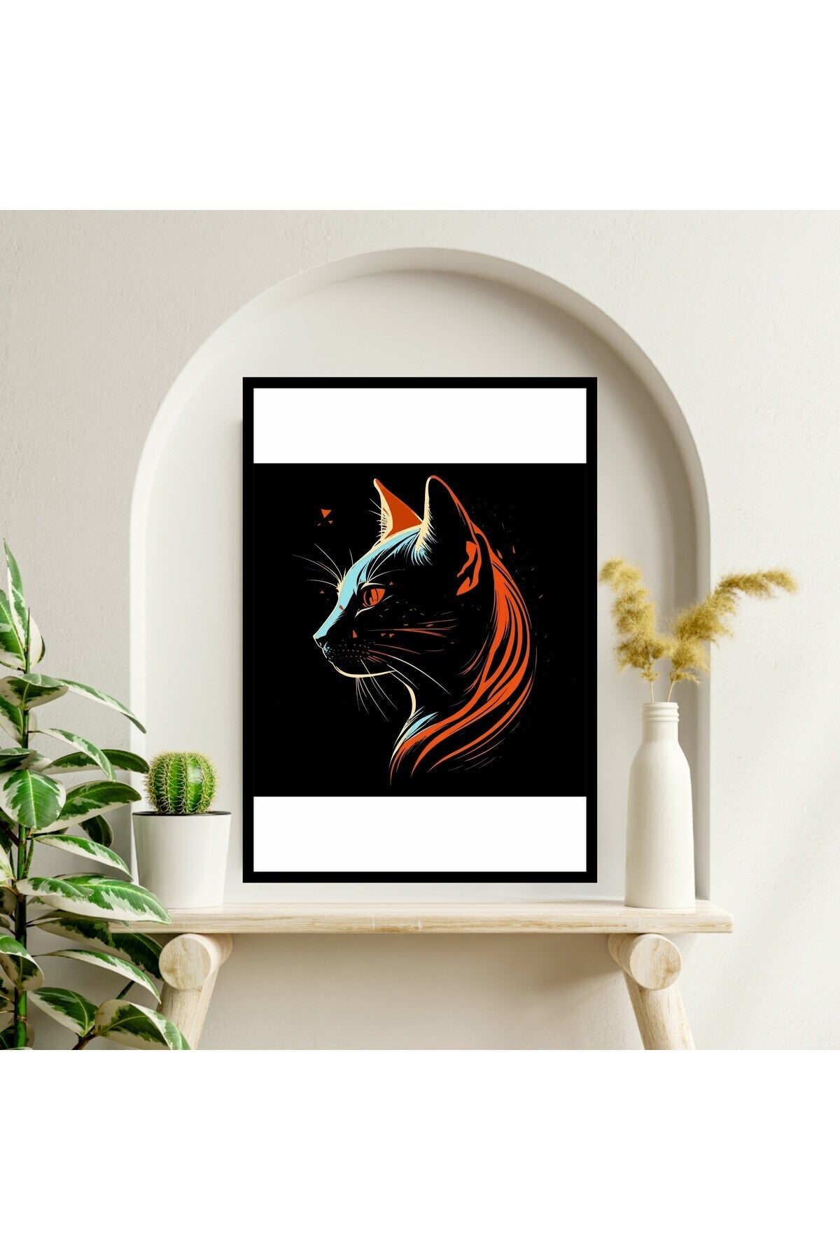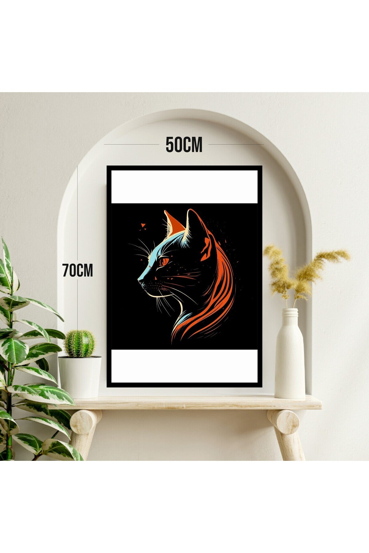 Kedi Hayvan Büyük Boy Renkli Solmaz Kaliteli Baskı Çerçeve Görünümlü MDF Tablo 70x50cm 178
