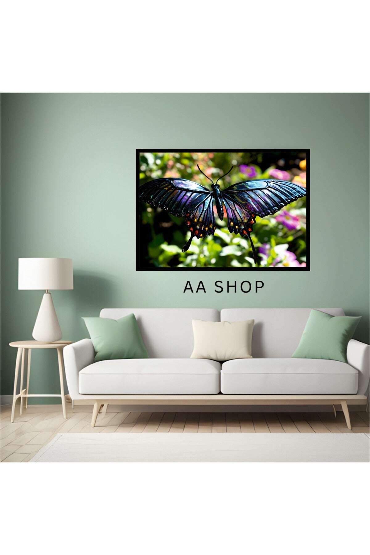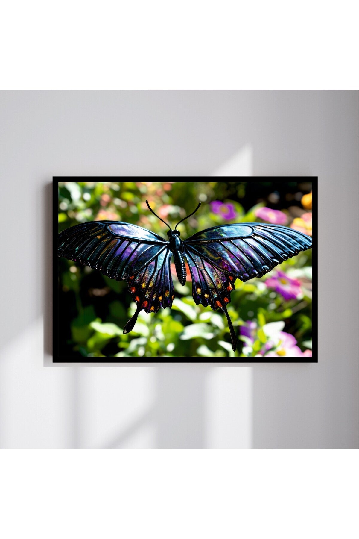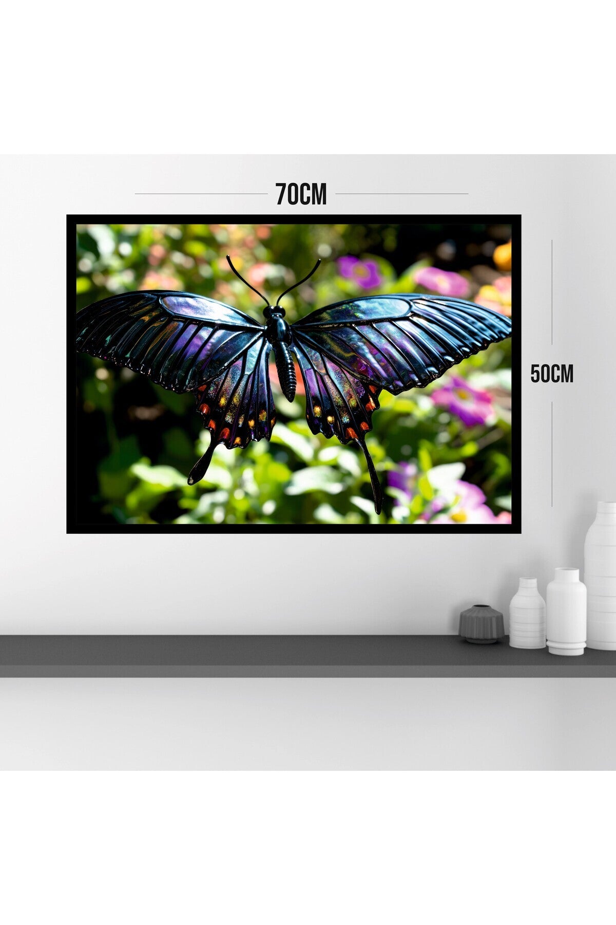 Kelebek Hayvan Büyük Boy Renkli Solmaz Kaliteli Baskı Çerçeve Görünümlü MDF Tablo 70x50cm 22