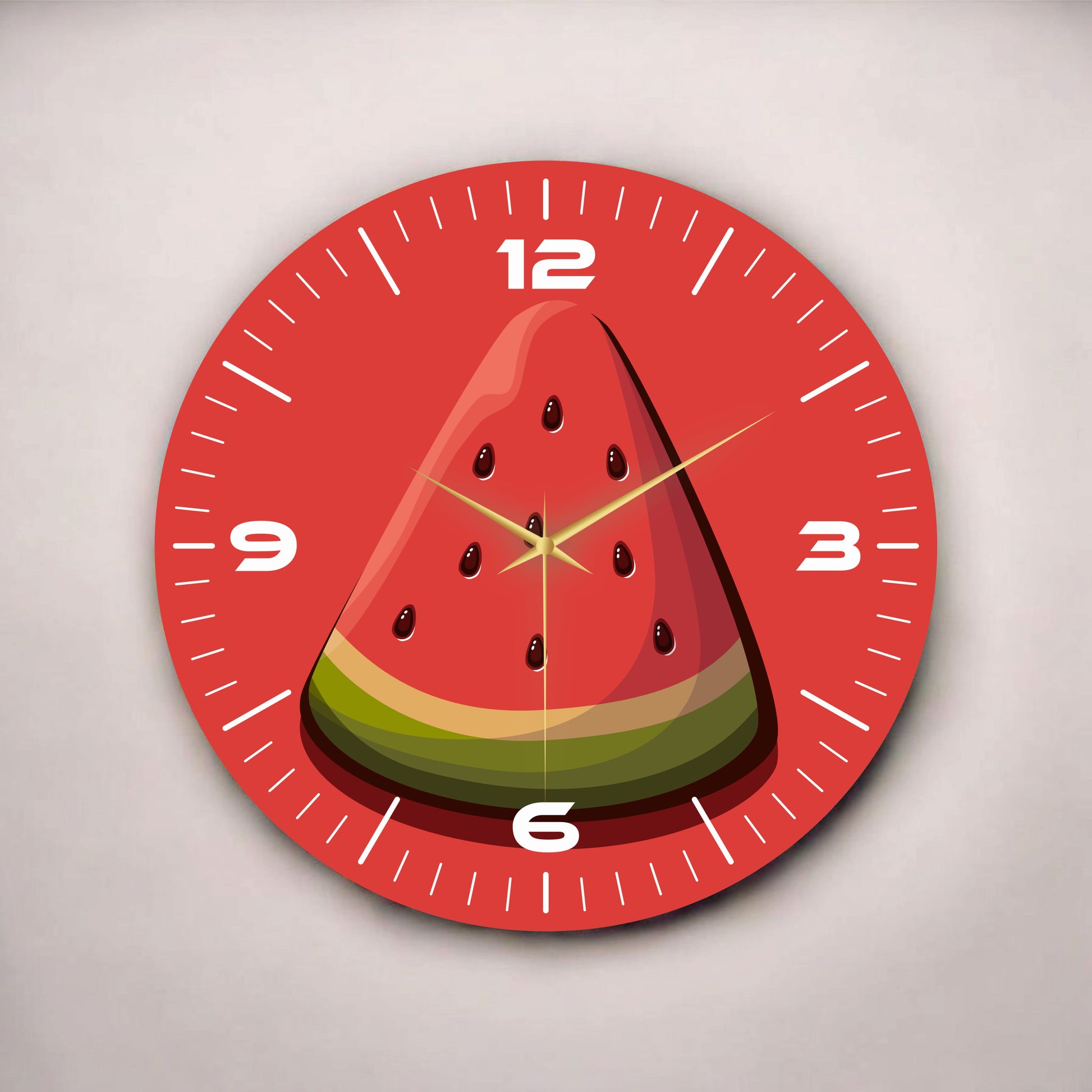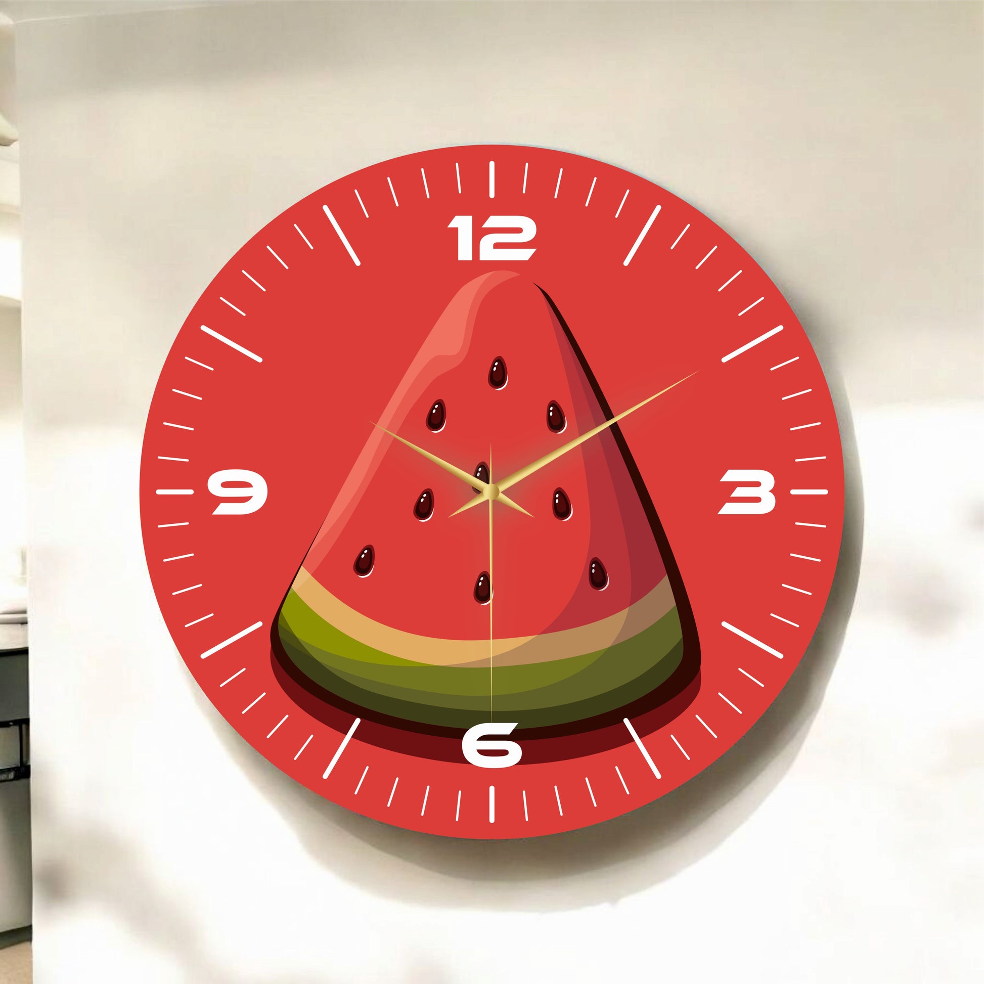Kırmızı Renkli Baskı Karpuz Meyve Desenli Sayılı Hediyelik Ahşap Sessiz Tablo Duvar Saati