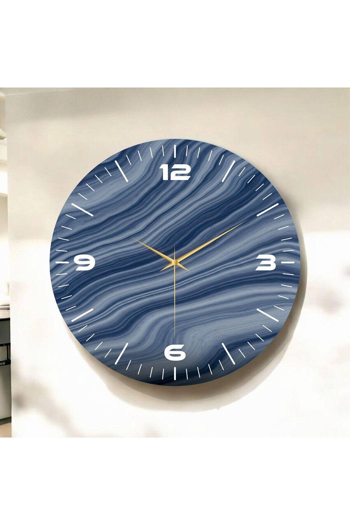 Mavi Renkli Baskı Ebru Desenli Sayılı Hediyelik Ahşap Sessiz Tablo Duvar Saati