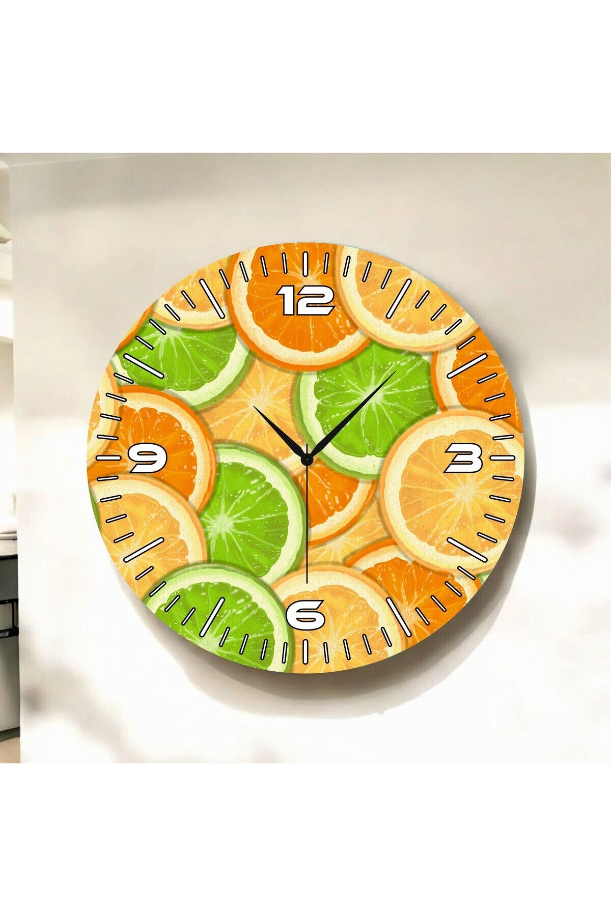 Meyve Temalı Renkli Baskı Portakal Desenli Sayılı Hediyelik Ahşap Sessiz Tablo Duvar Saati