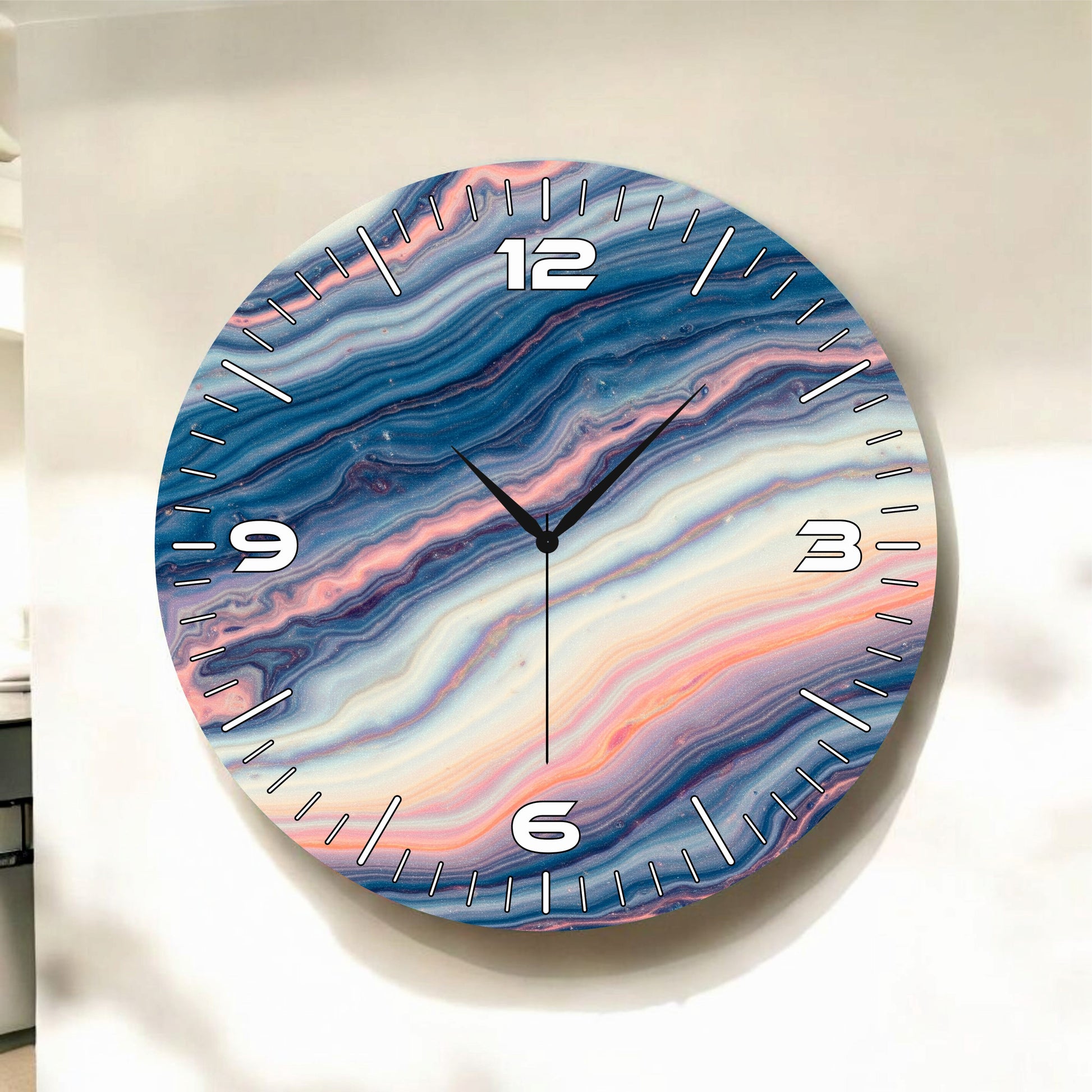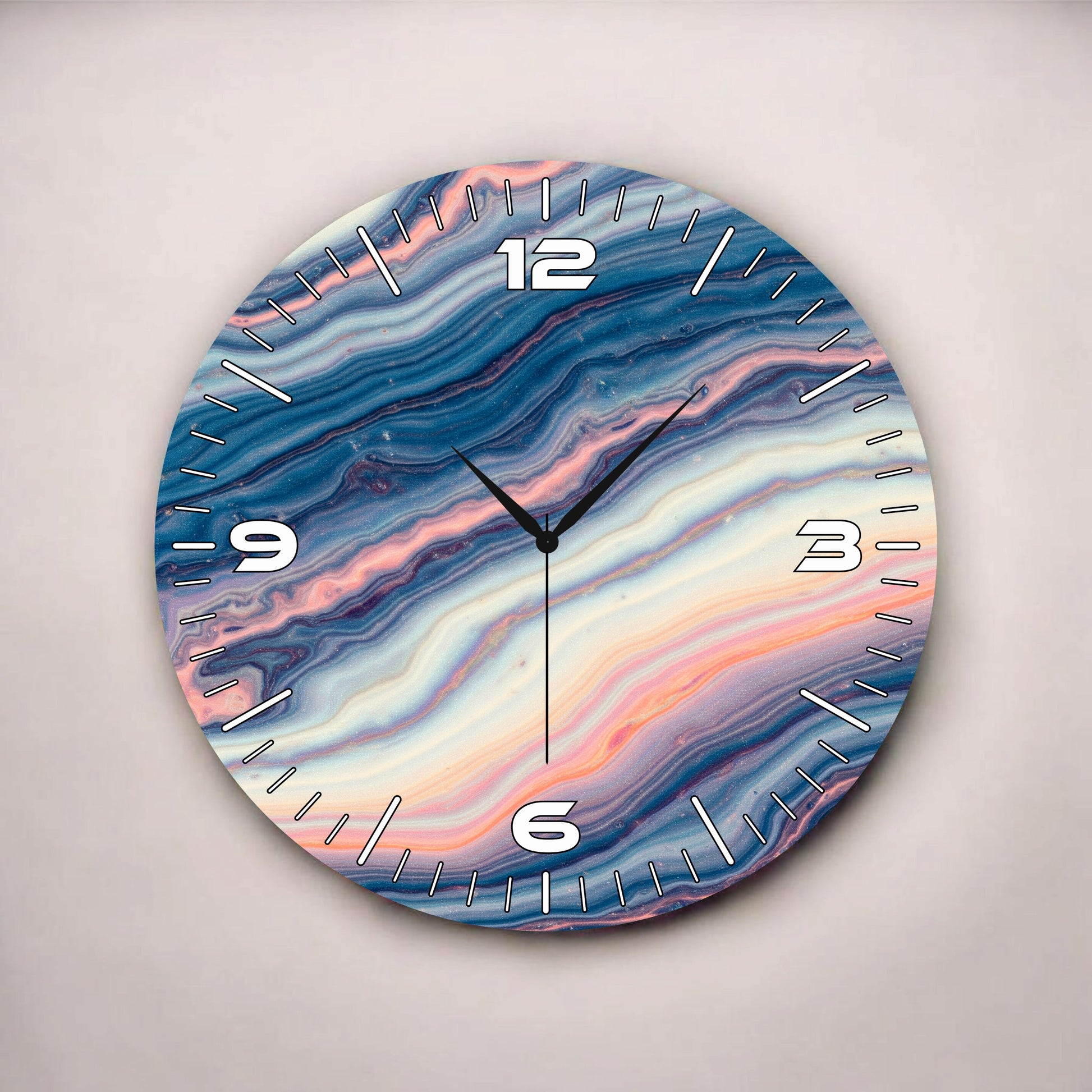 Modern Renkli Baskı Ebru Desenli Sayılı Hediyelik Ahşap Sessiz Tablo Duvar Saati
