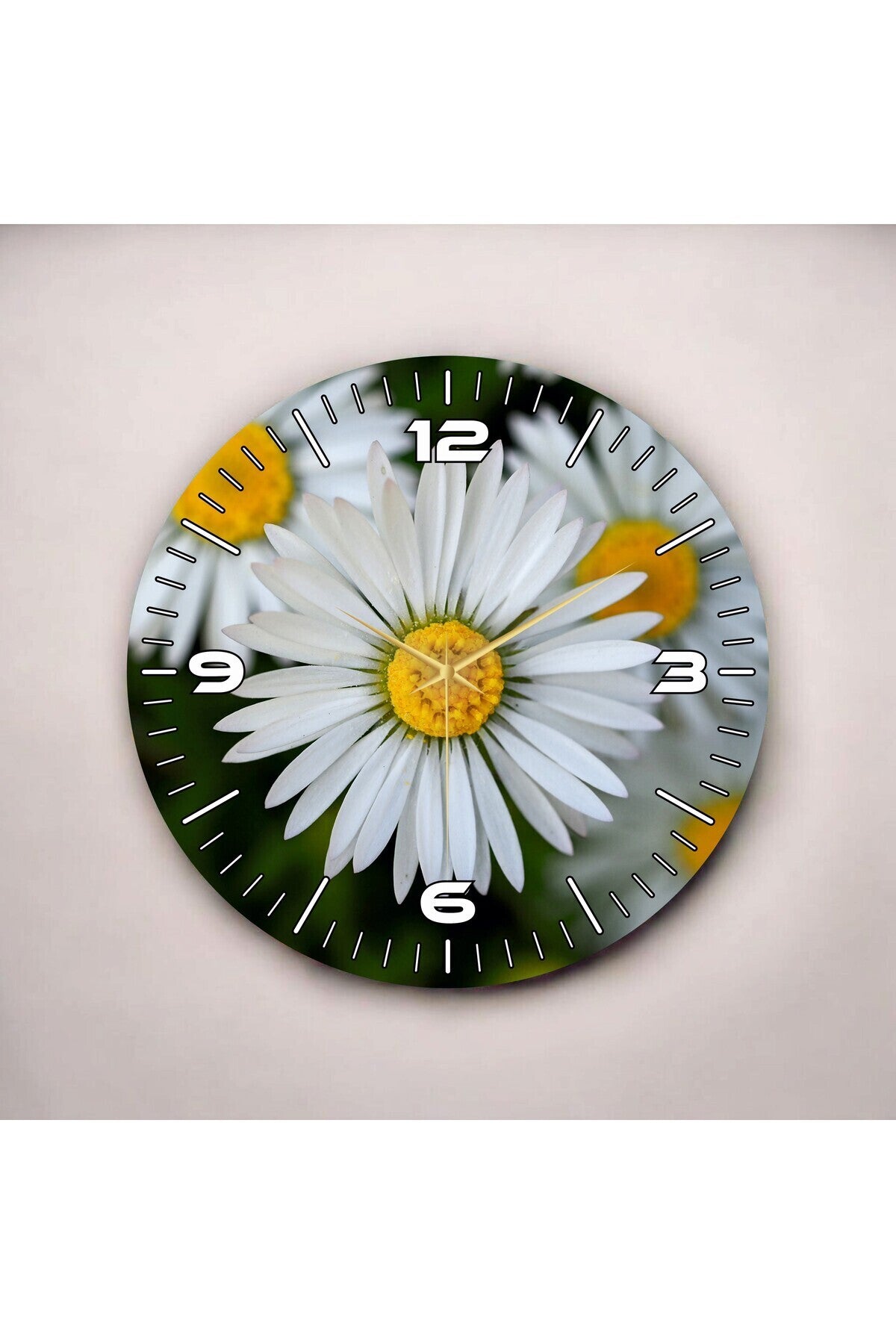 Papatya Tasarımlı Renkli Baskı Çiçek Desenli Sayılı Hediyelik Ahşap Sessiz Tablo Duvar Saati