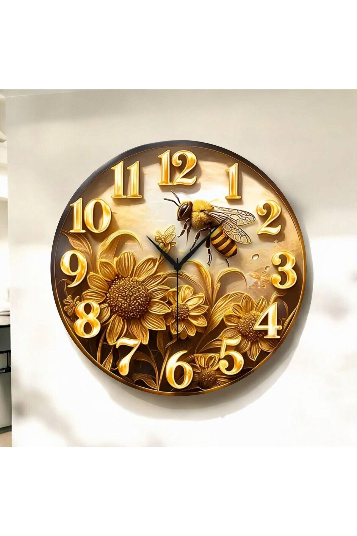 Renkli Baskı Arı Desenli Sayılı Hediyelik Ahşap Sessiz Tablo Duvar Saati