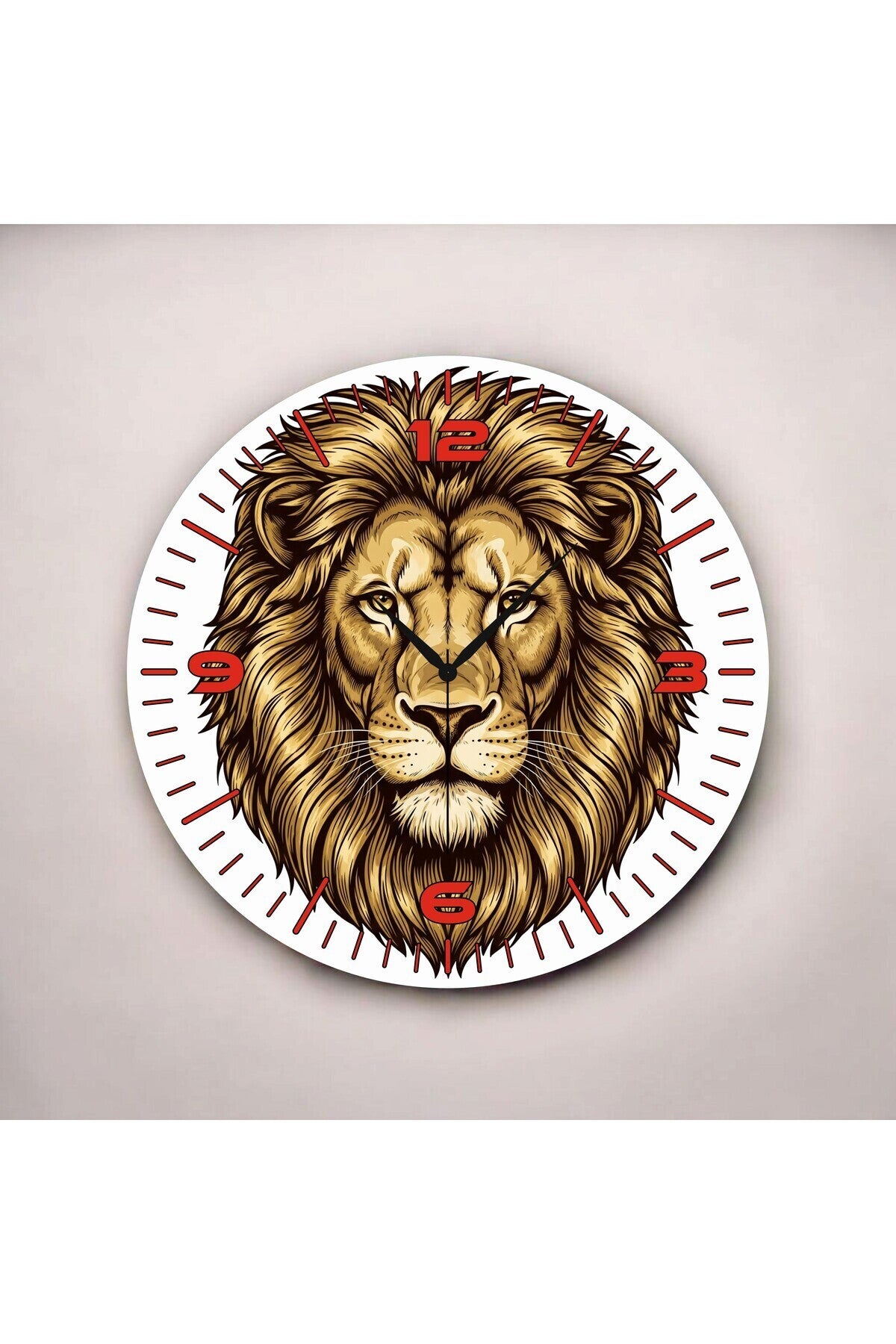 Renkli Baskı Aslan Desenli Sayılı Hediyelik Ahşap Sessiz Tablo Duvar Saati