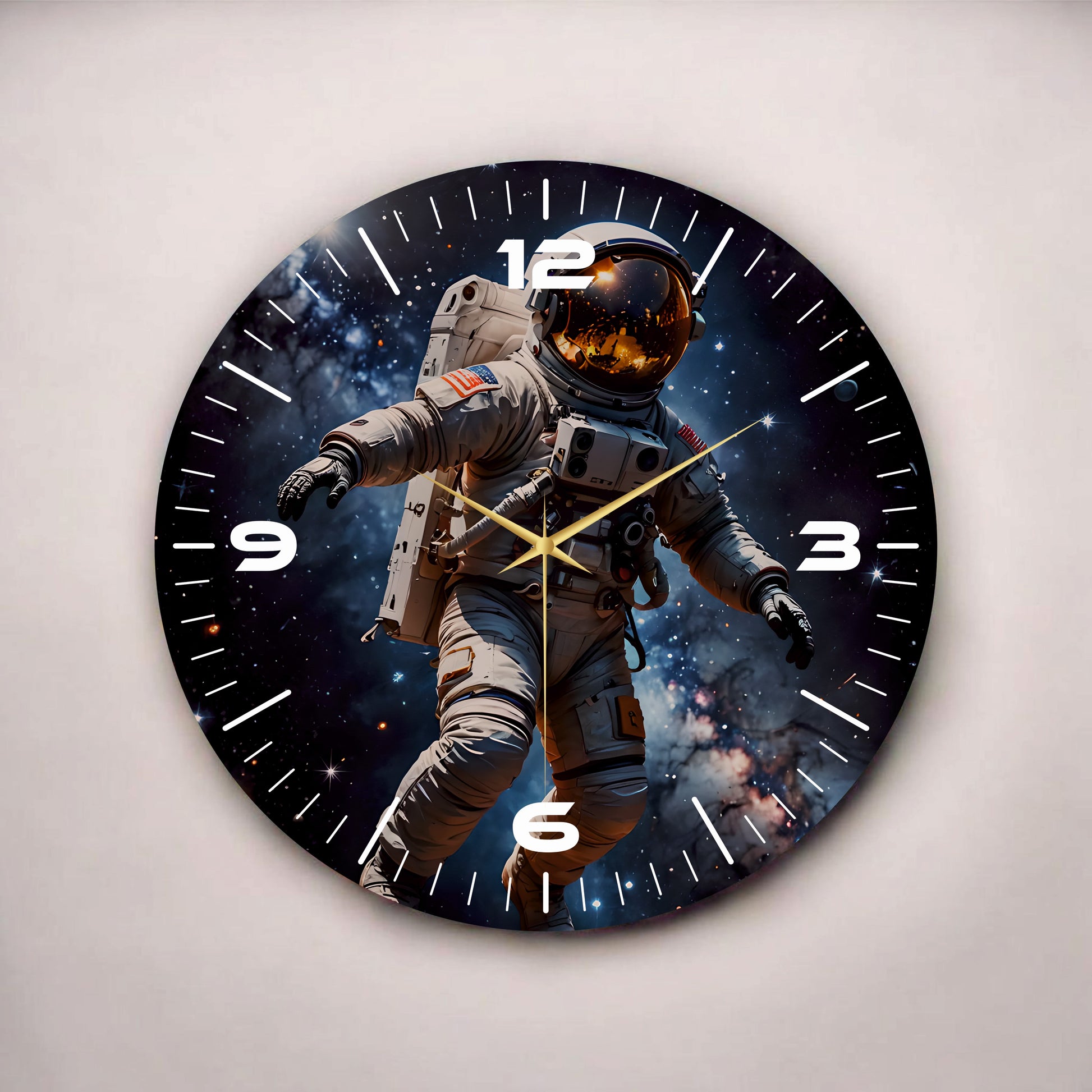 Renkli Baskı Astronot Desenli Sayılı Hediyelik Ahşap Sessiz Tablo Duvar Saati