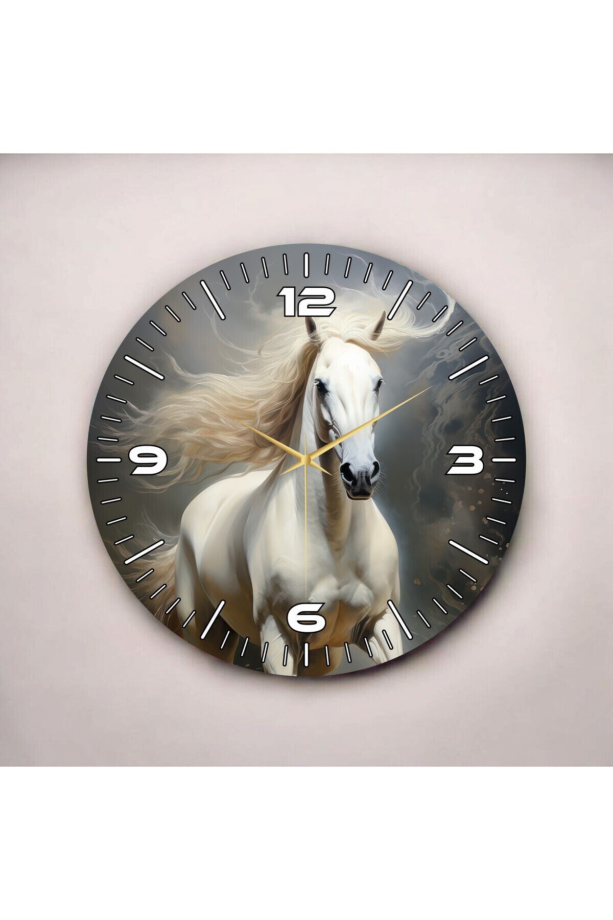Renkli Baskı At Desenli Sayılı Hediyelik Ahşap Sessiz Tablo Duvar Saati