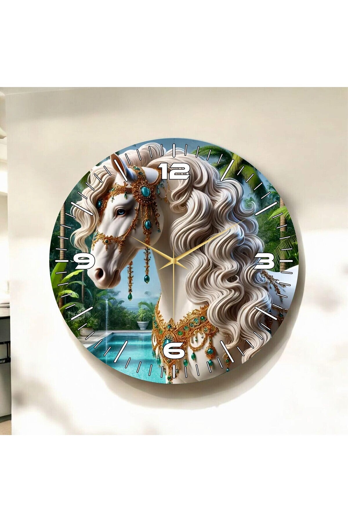 Renkli Baskı At Desenli Sayılı Hediyelik Ahşap Sessiz Tablo Duvar Saati
