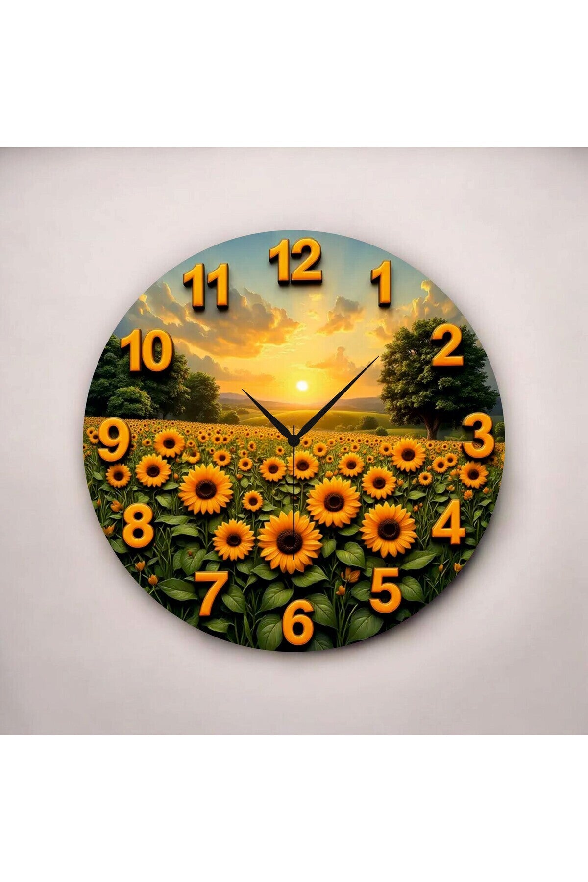 Renkli Baskı Ayçiçek Desenli Sayılı Hediyelik Ahşap Sessiz Tablo Duvar Saati
