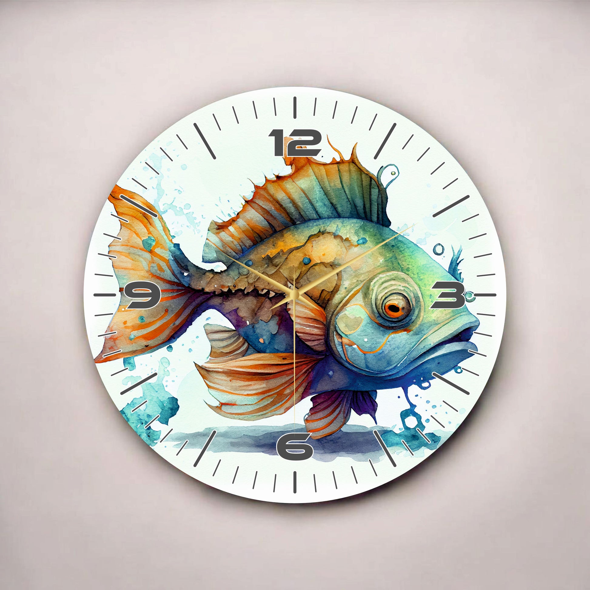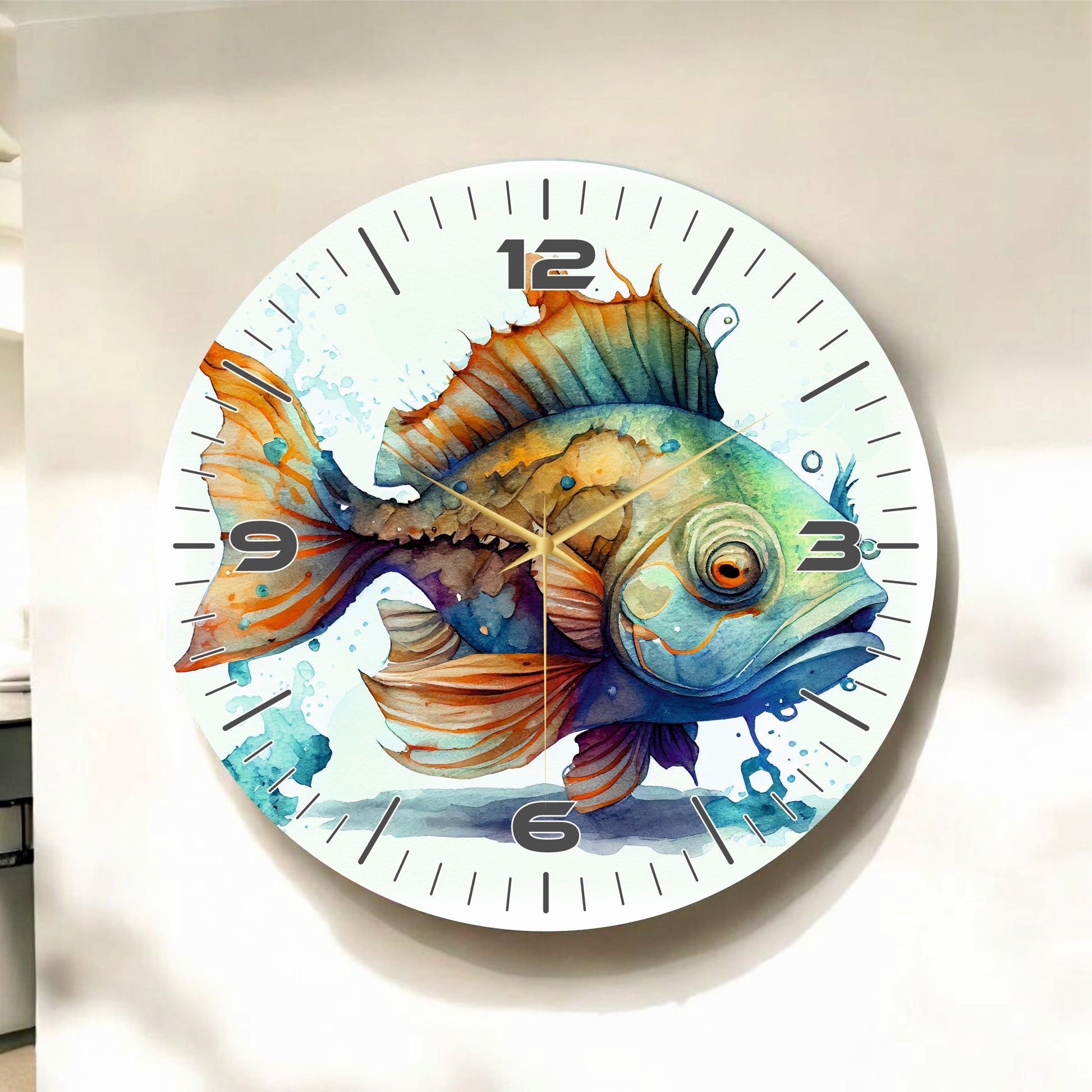 Renkli Baskı Balık Desenli Sayılı Hediyelik Ahşap Sessiz Tablo Duvar Saati