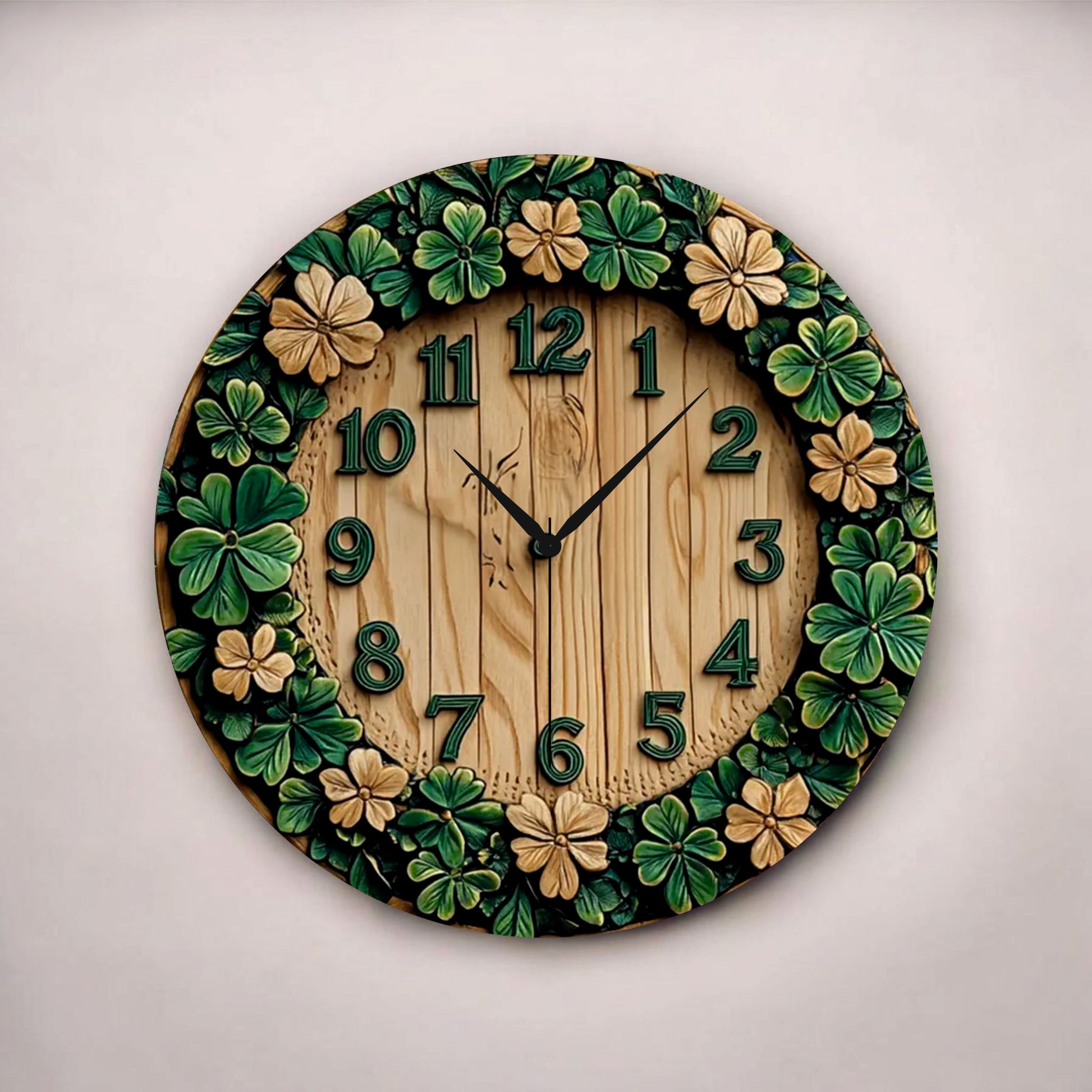 Renkli Baskı Çiçek Desenli Sayılı Hediyelik Ahşap Sessiz Tablo Duvar Saati
