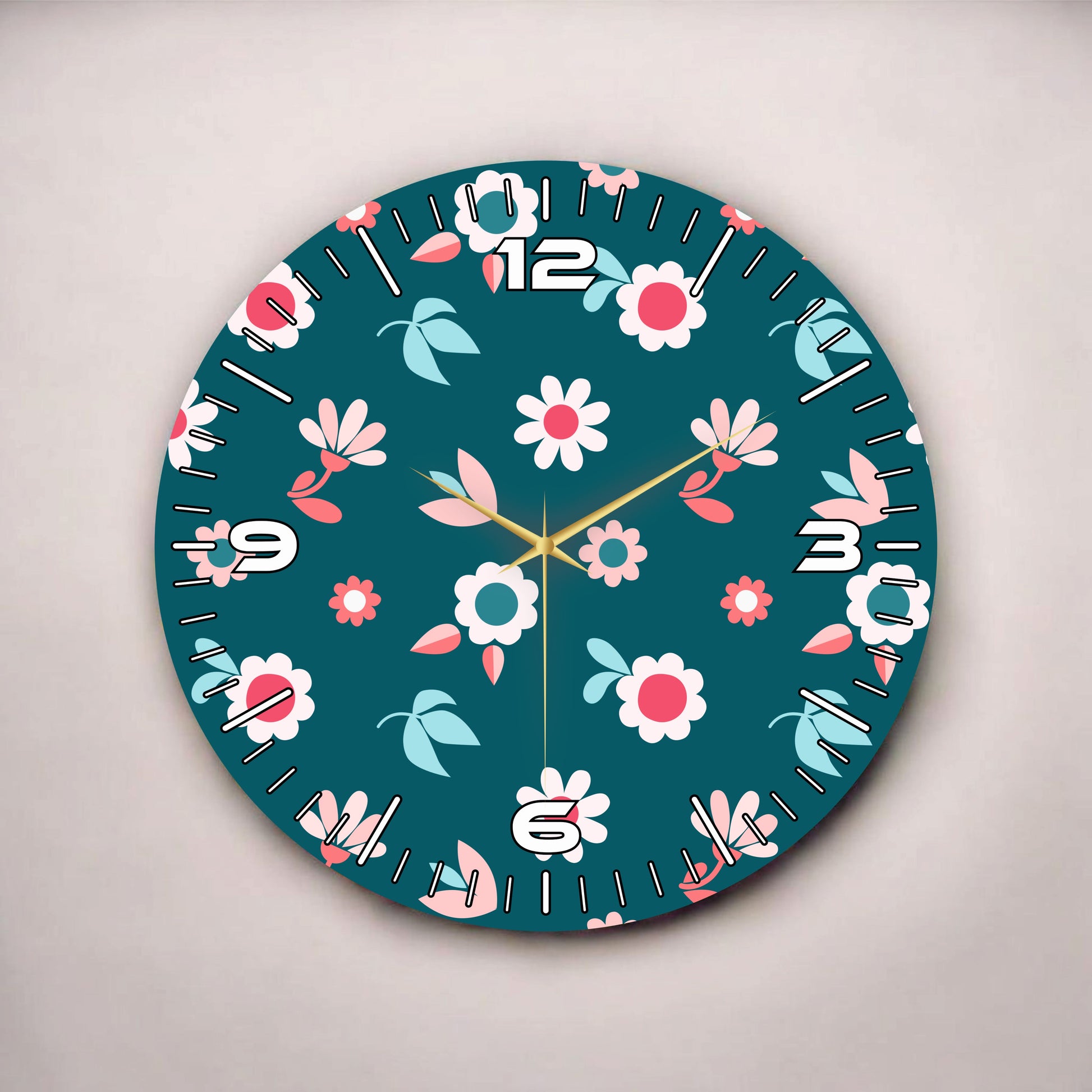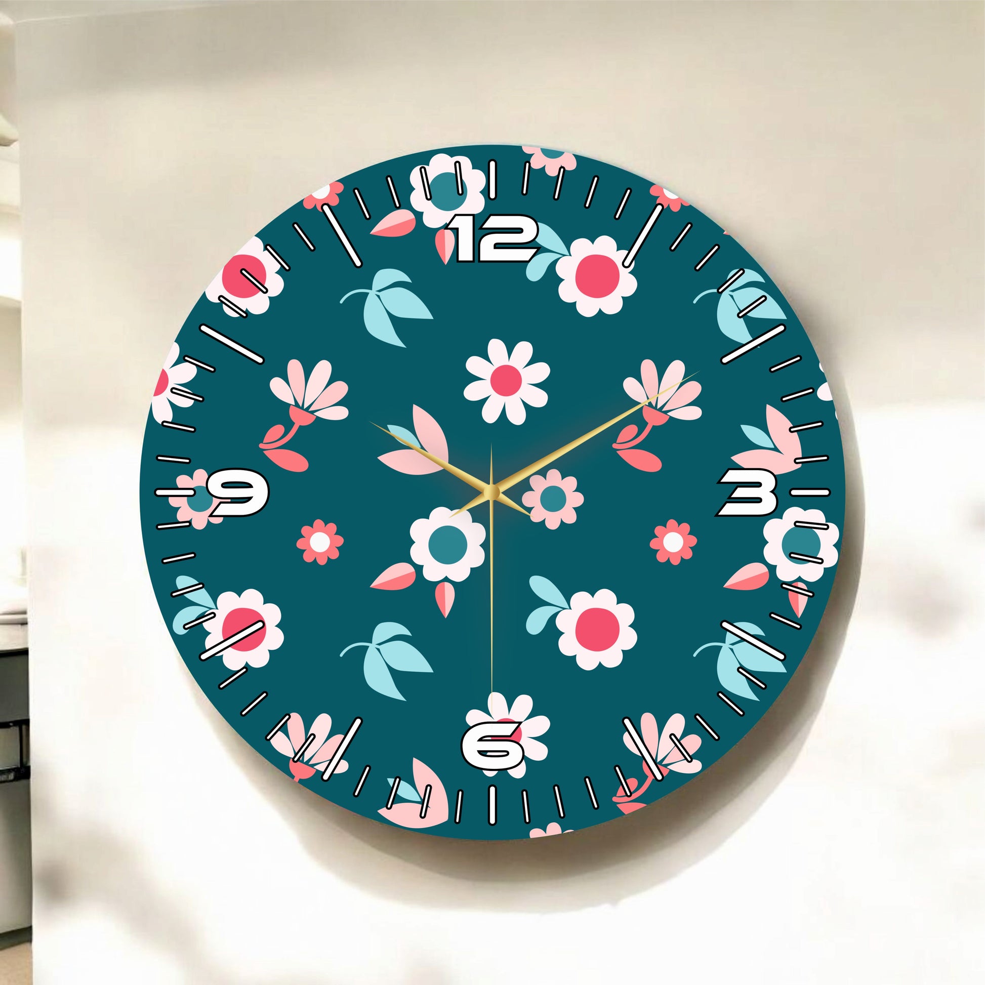 Renkli Baskı Çiçek Desenli Sayılı Hediyelik Ahşap Sessiz Tablo Duvar Saati