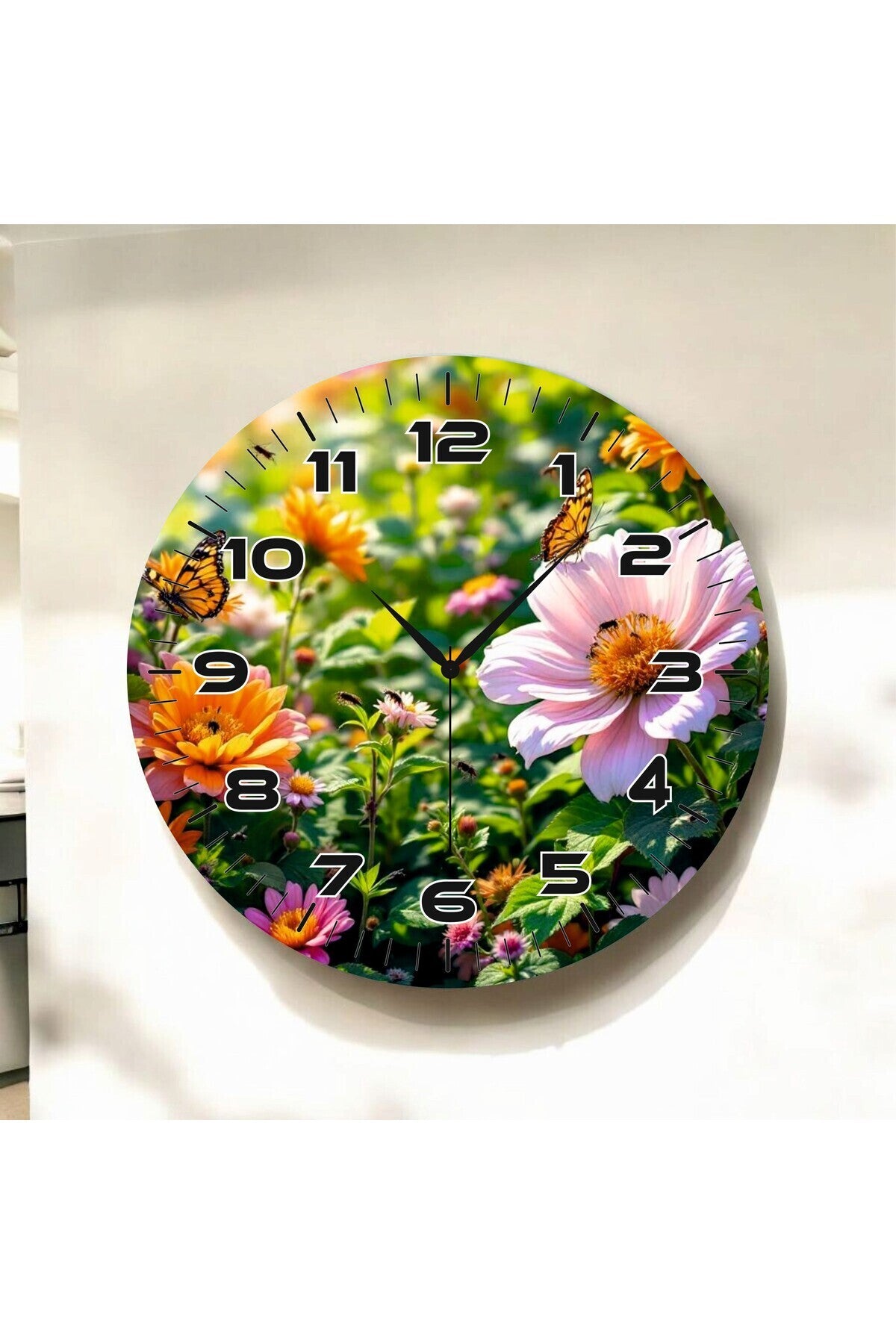 Renkli Baskı Çiçek Doğa Desenli Sayılı Hediyelik Ahşap Sessiz Tablo Duvar Saati