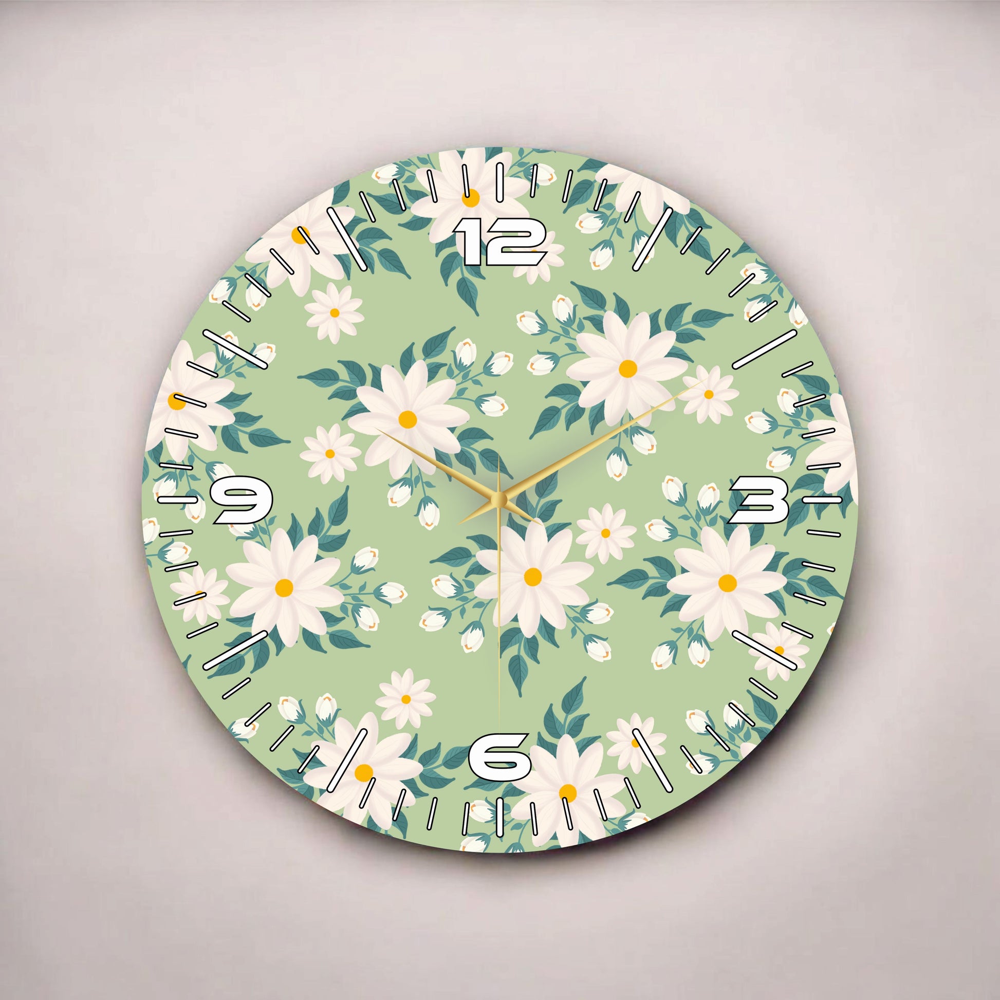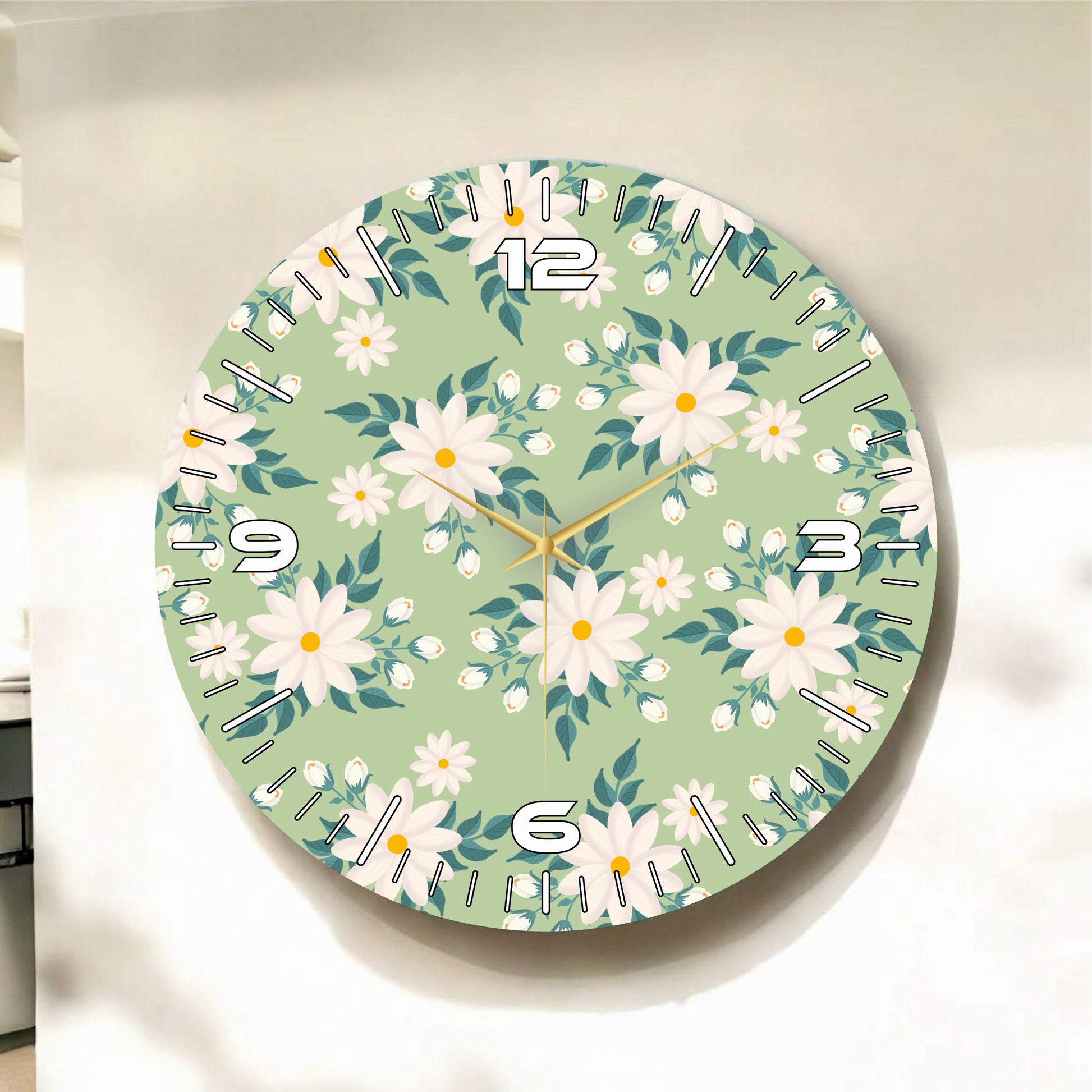 Renkli Baskı Çiçek Papatya Desenli Sayılı Hediyelik Ahşap Sessiz Tablo Duvar Saati