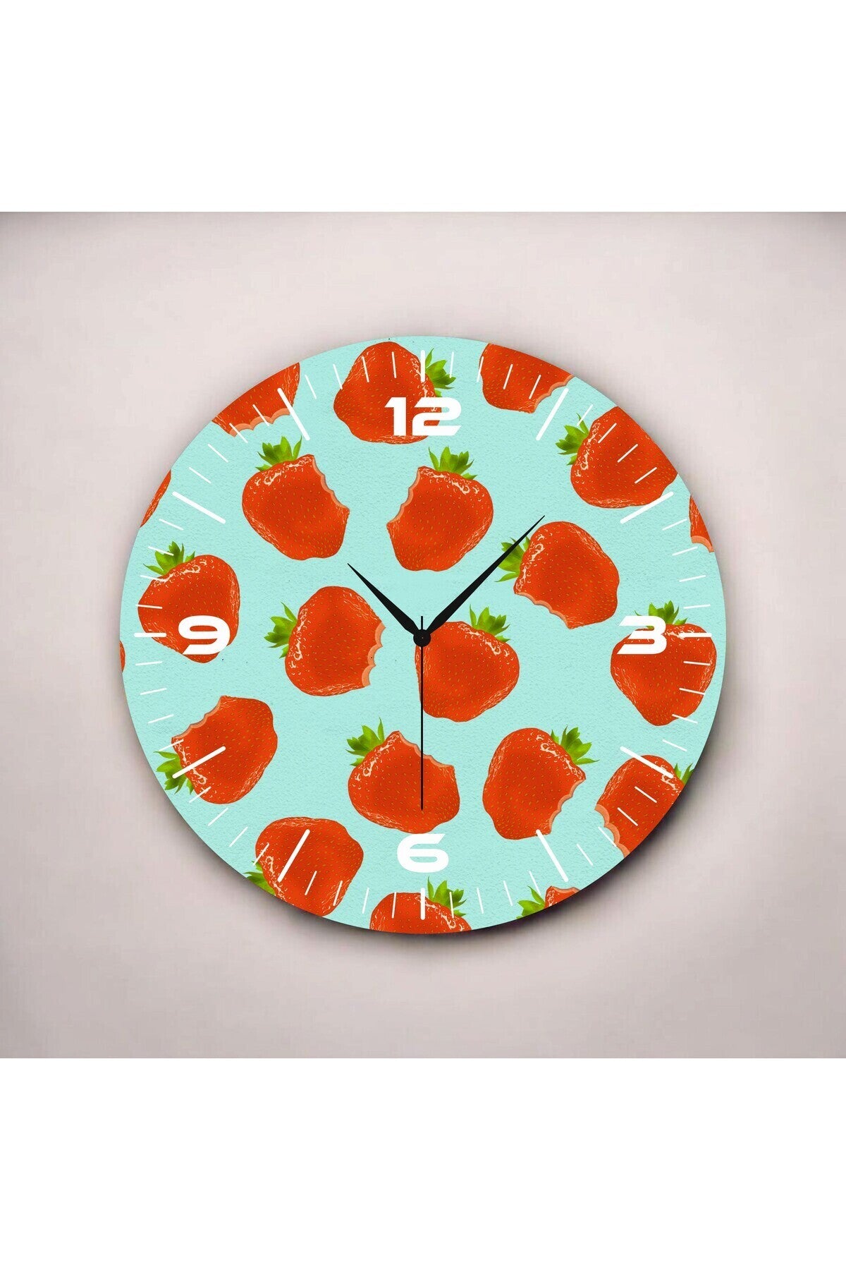 Renkli Baskı Çilek Meyve Desenli Sayılı Hediyelik Ahşap Sessiz Tablo Duvar Saati