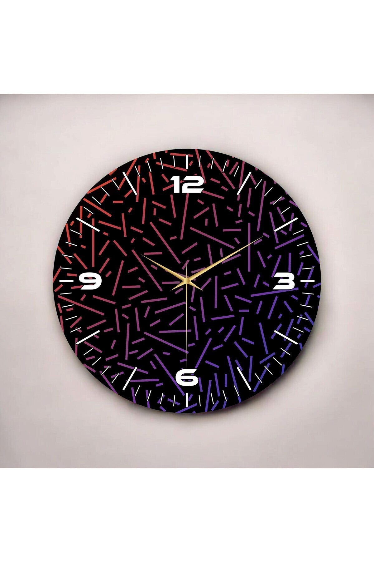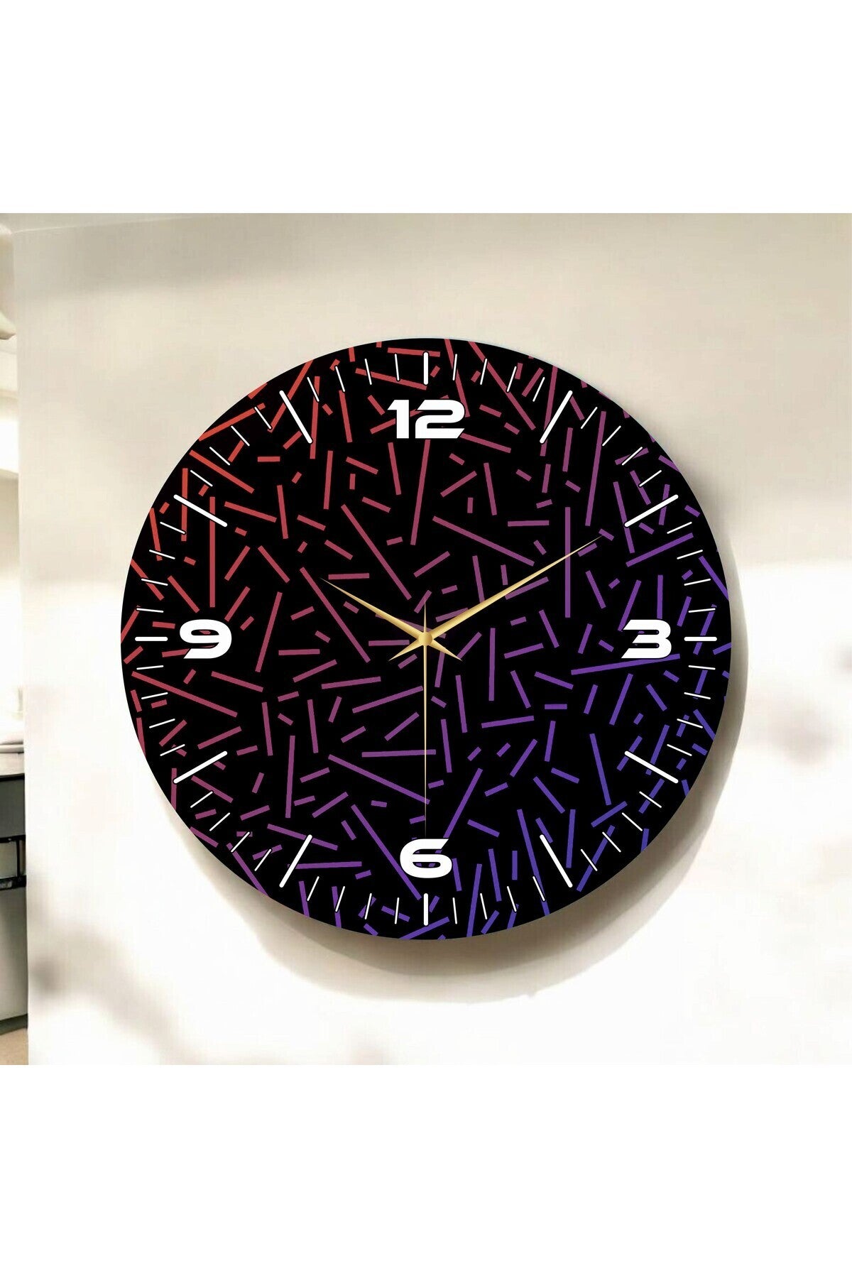 Renkli Baskı Çizgi Desenli Sayılı Hediyelik Ahşap Sessiz Tablo Duvar Saati