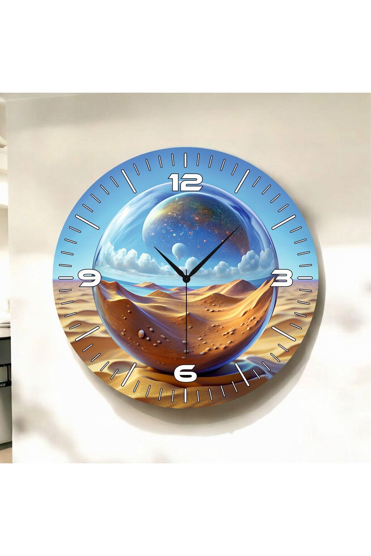 "- Modern tasarımıyla dikkat çeken renkli baskı desenleri , mekanınıza şık bir dokunuş katıyor.; "- 45cm çapındaki yuvarlak formu ile hem Tablo Duvarlarınızda estetik bir görünüm sunuyor.; "- Ahşap malzemesi sayesinde doğal bir hissiyat sağlayarak yaşam alanlarınıza sıcaklık katıyor.; "- Pilli çalışma tipi ile kolayca kurulabilir ve enerji tasarrufu yapmanızı sağlar.; "- Boyut/Ebat seçeneği olarak sunulan 50 x 45cm ölçüsü, standart Tablo Duvarlarınızla uyumlu bir şekilde yerleştirilmesini mümkün kılar.; "- Modern tema ve stil anlayışıyla evinizdeki dekorasyonunuzu tamamlar ve güncel trendlere uygun bir görünüm sunar.
