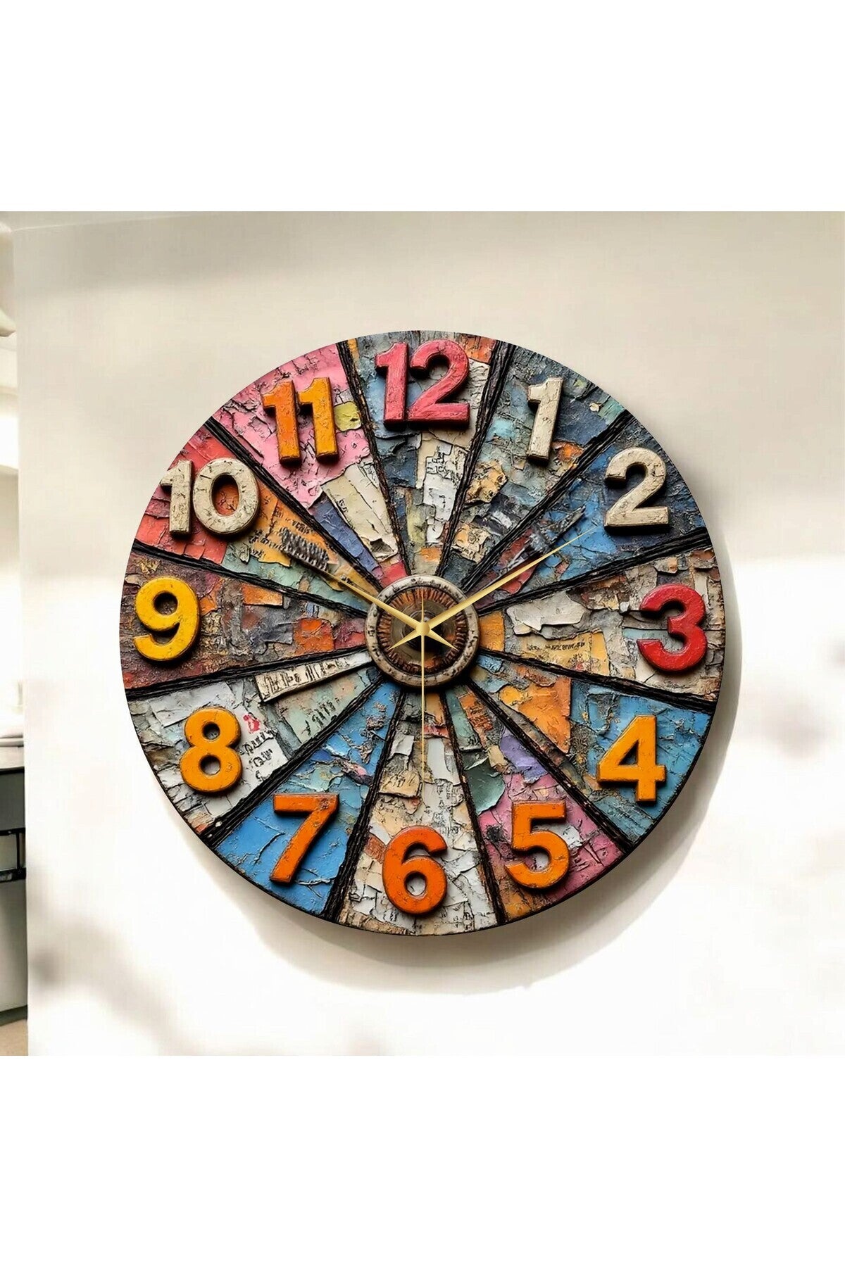 Renkli Baskı Desenli Sayılı Hediyelik Ahşap Sessiz Tablo Duvar Saati