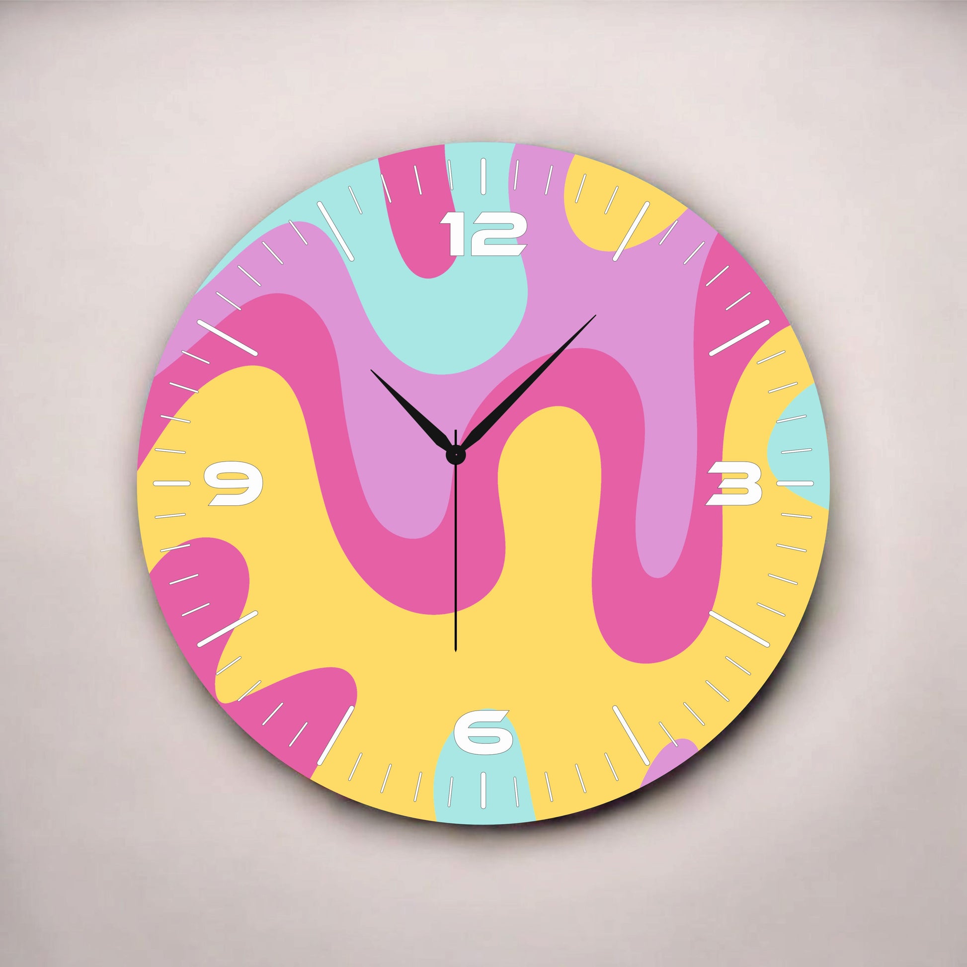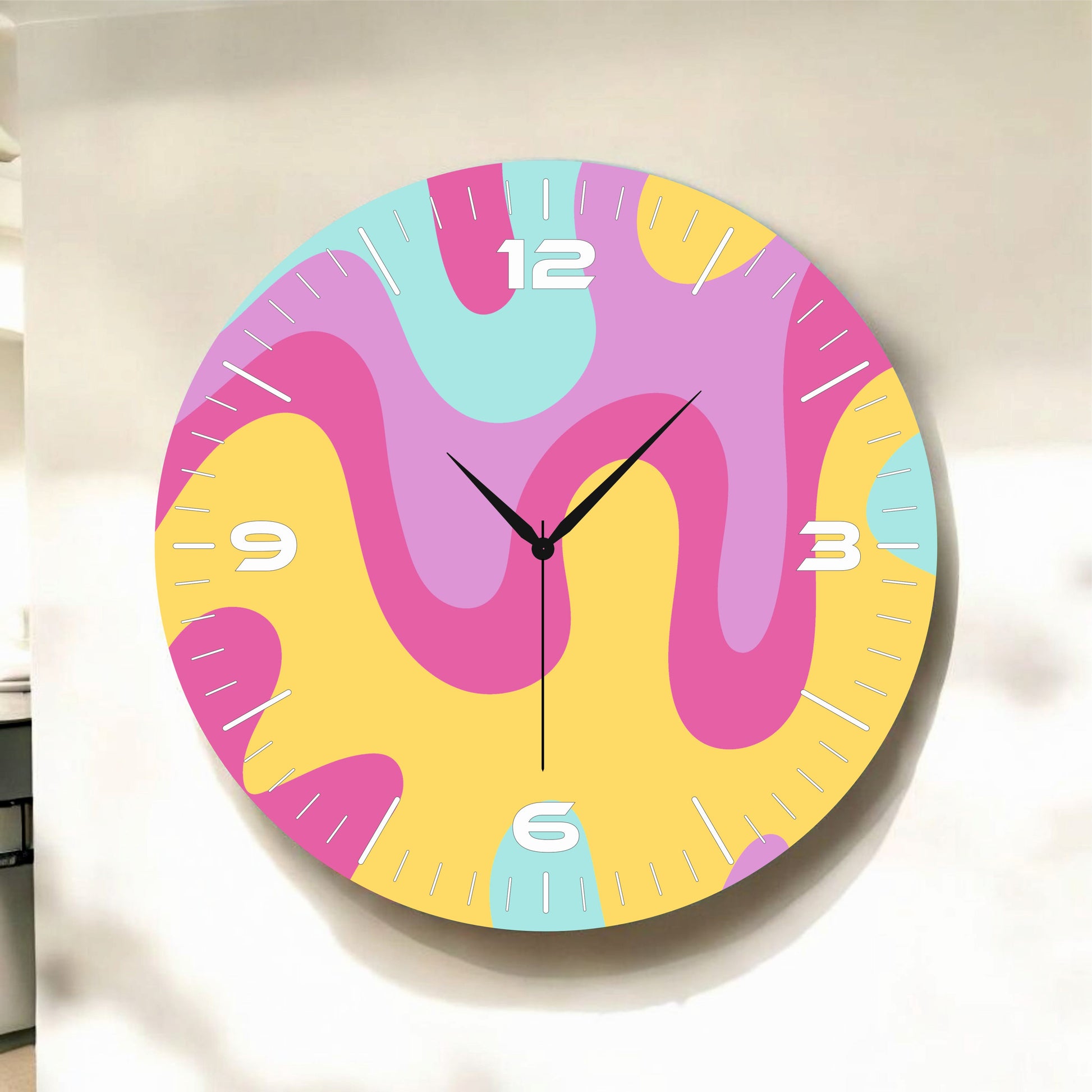 Renkli Baskı Desenli Sayılı Hediyelik Ahşap Sessiz Tablo Duvar Saati