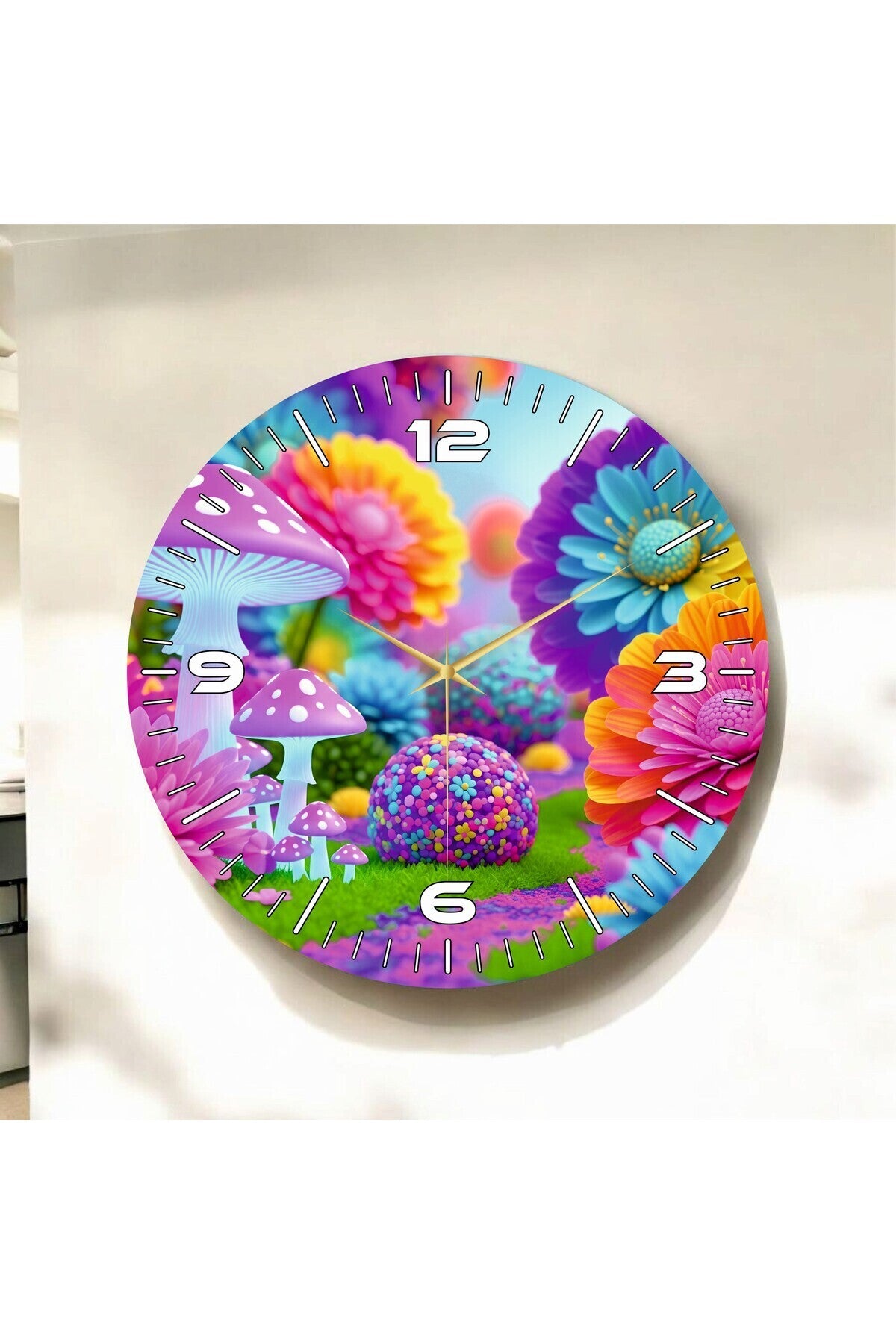 Renkli Baskı Desenli Sayılı Hediyelik Ahşap Sessiz Tablo Duvar Saati