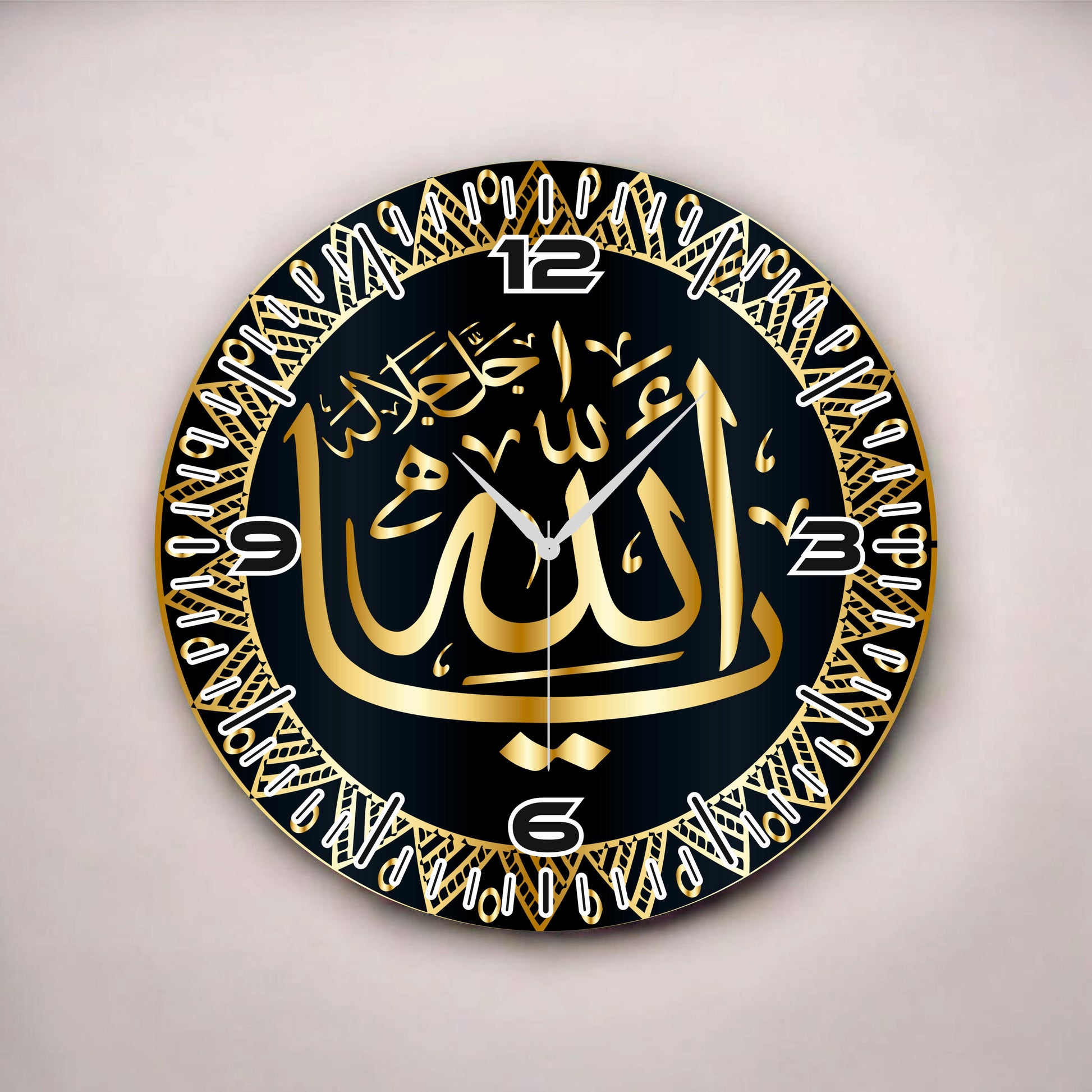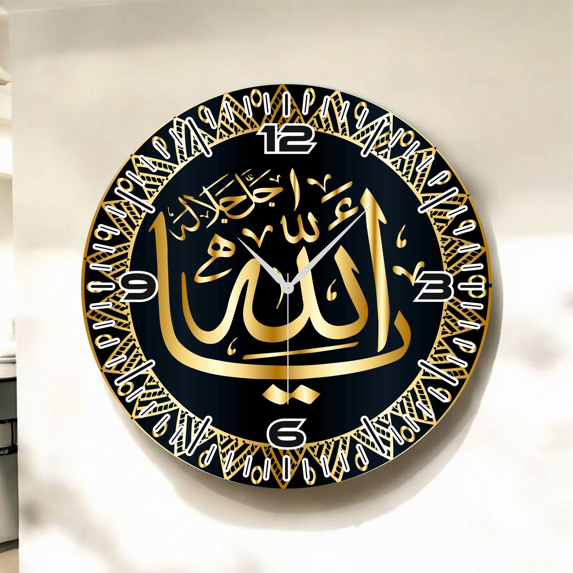 Renkli Baskı Dini Desenli Sayılı Hediyelik Ahşap Sessiz Tablo Duvar Saati