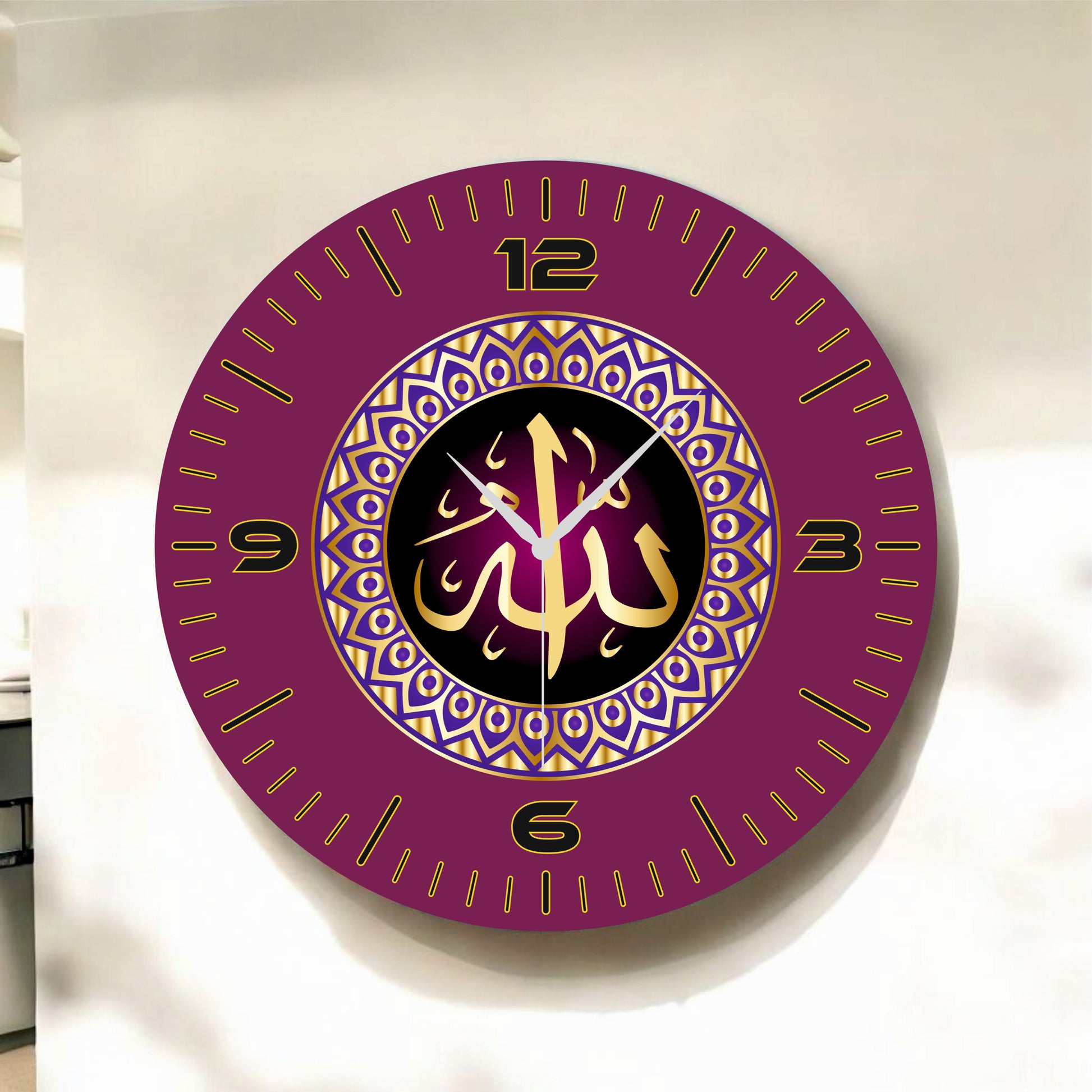 Renkli Baskı Dini Desenli Sayılı Hediyelik Ahşap Sessiz Tablo Duvar Saati