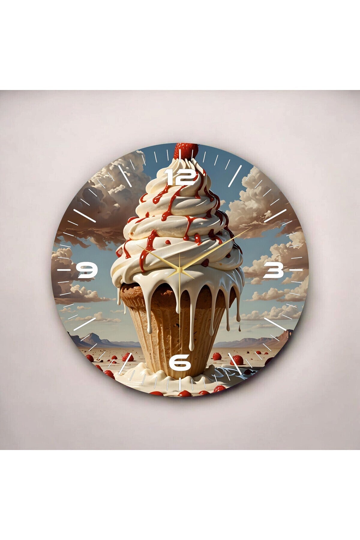 Renkli Baskı Dondurma Desenli Sayılı Hediyelik Ahşap Sessiz Tablo Duvar Saati