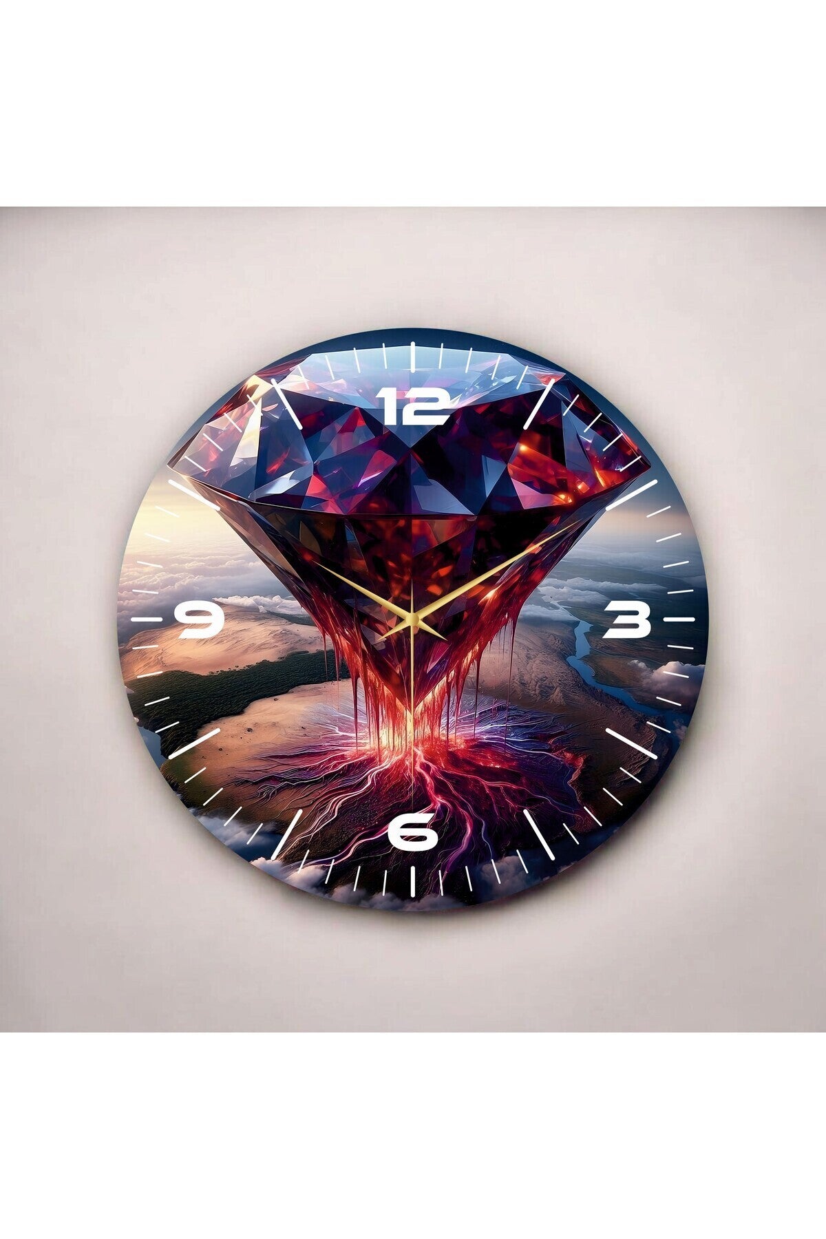 Renkli Baskı Elmas Desenli Sayılı Hediyelik Ahşap Sessiz Tablo Duvar Saati