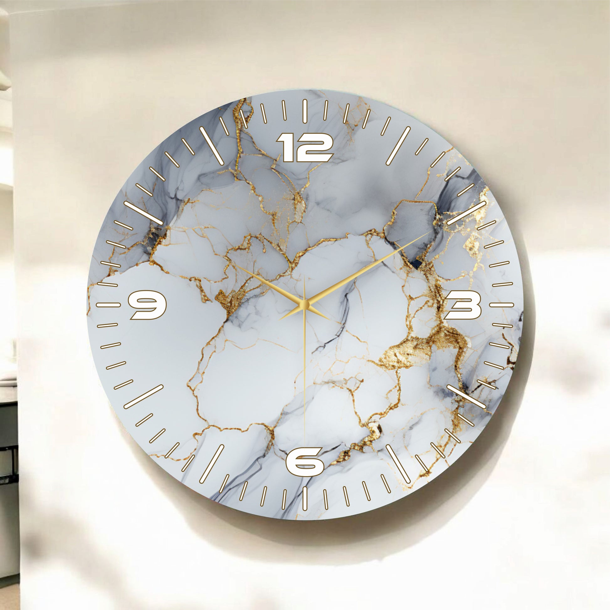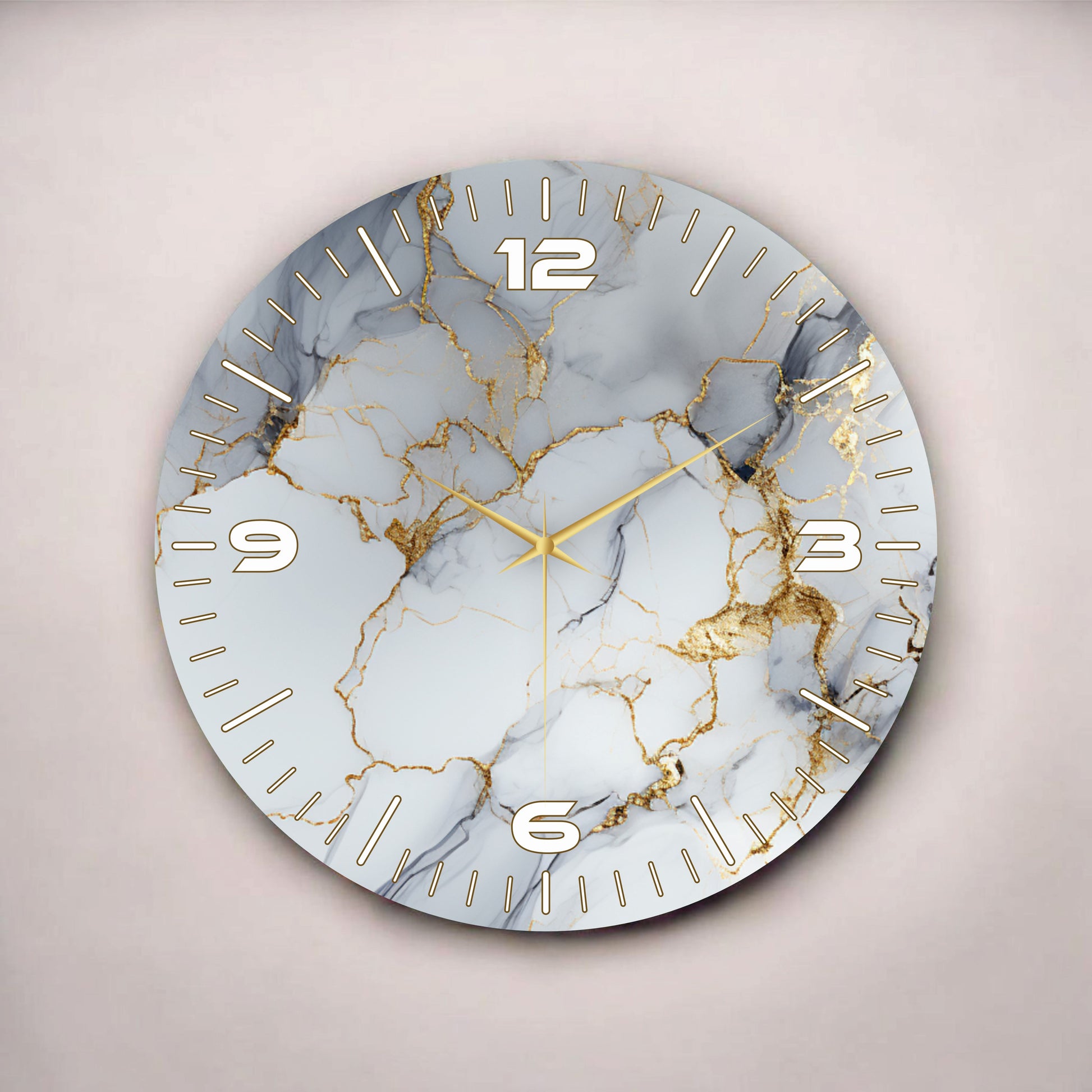 Renkli Baskı Gold Mermer Desenli Sayılı Hediyelik Ahşap Sessiz Tablo Duvar Saati