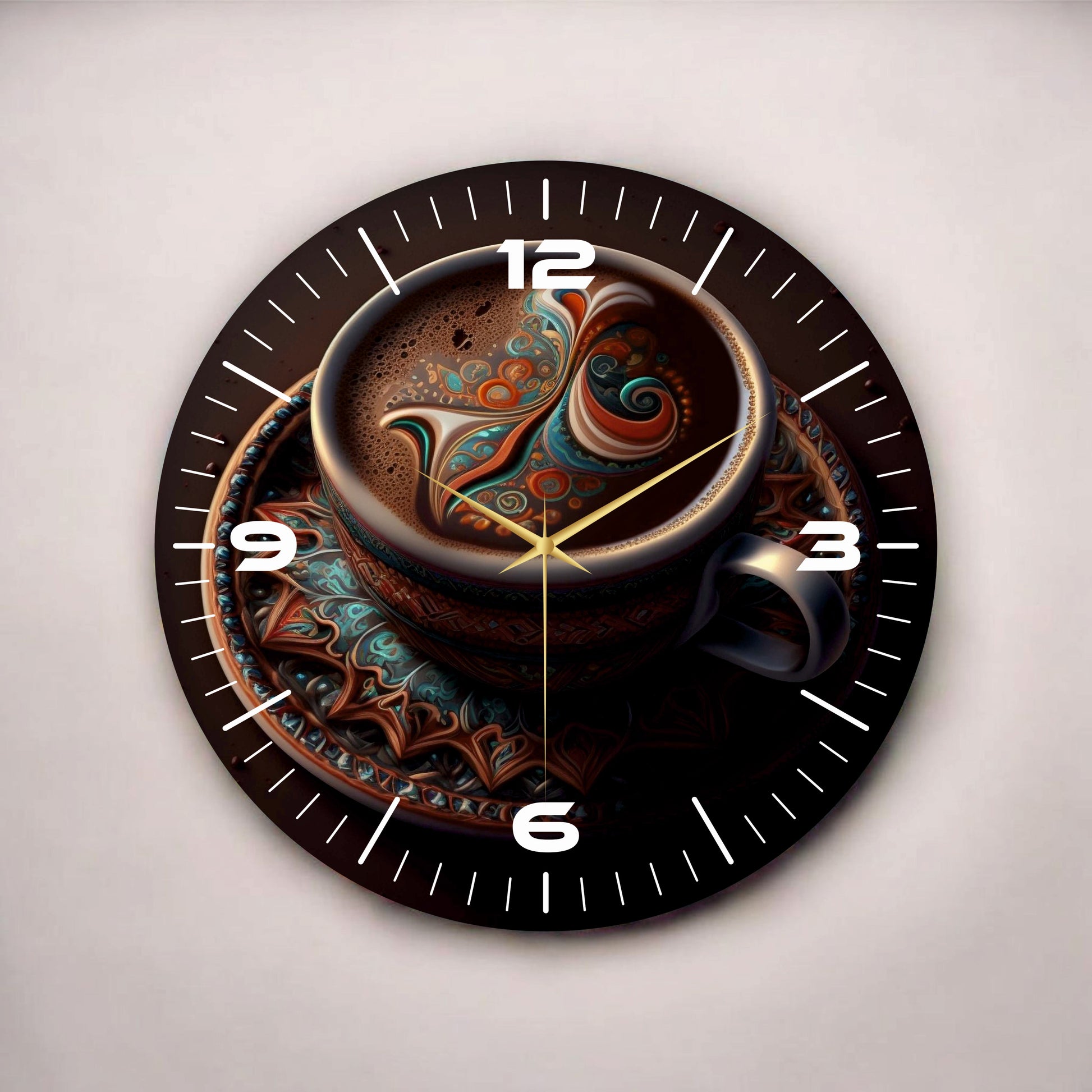 Renkli Baskı Kahve Desenli Sayılı Hediyelik Ahşap Sessiz Tablo Duvar Saati