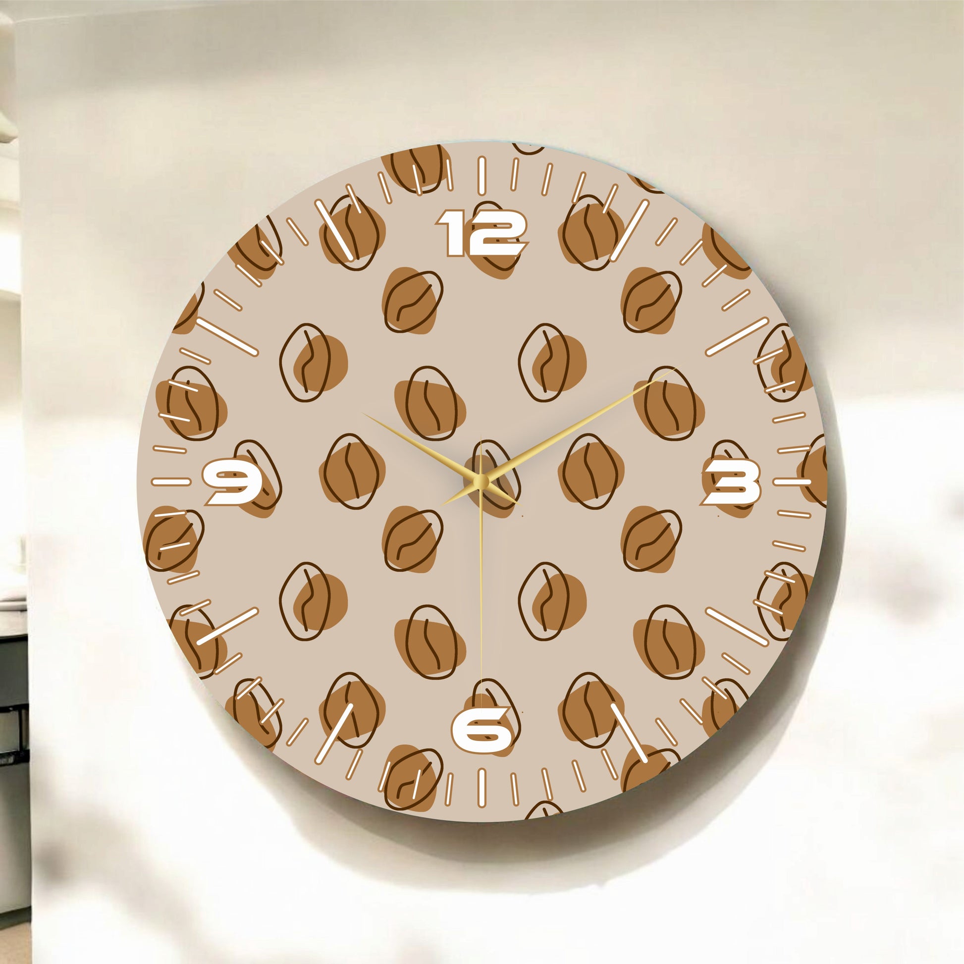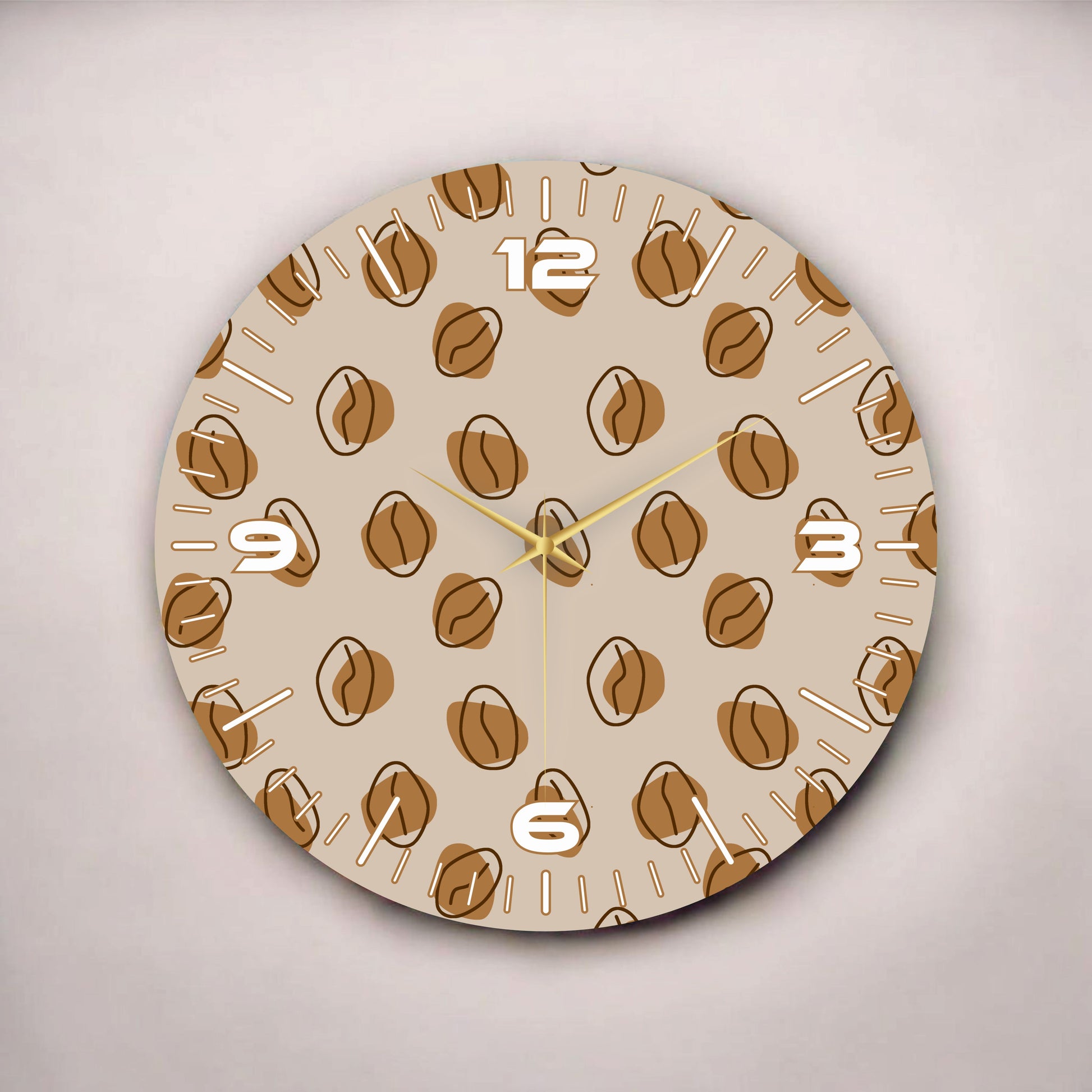 Renkli Baskı Kahve Desenli Sayılı Hediyelik Ahşap Sessiz Tablo Duvar Saati