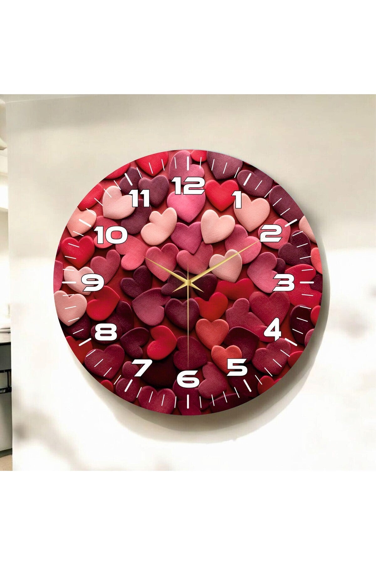 Renkli Baskı Kalp Desenli Sayılı Hediyelik Ahşap Sessiz Tablo Duvar Saati