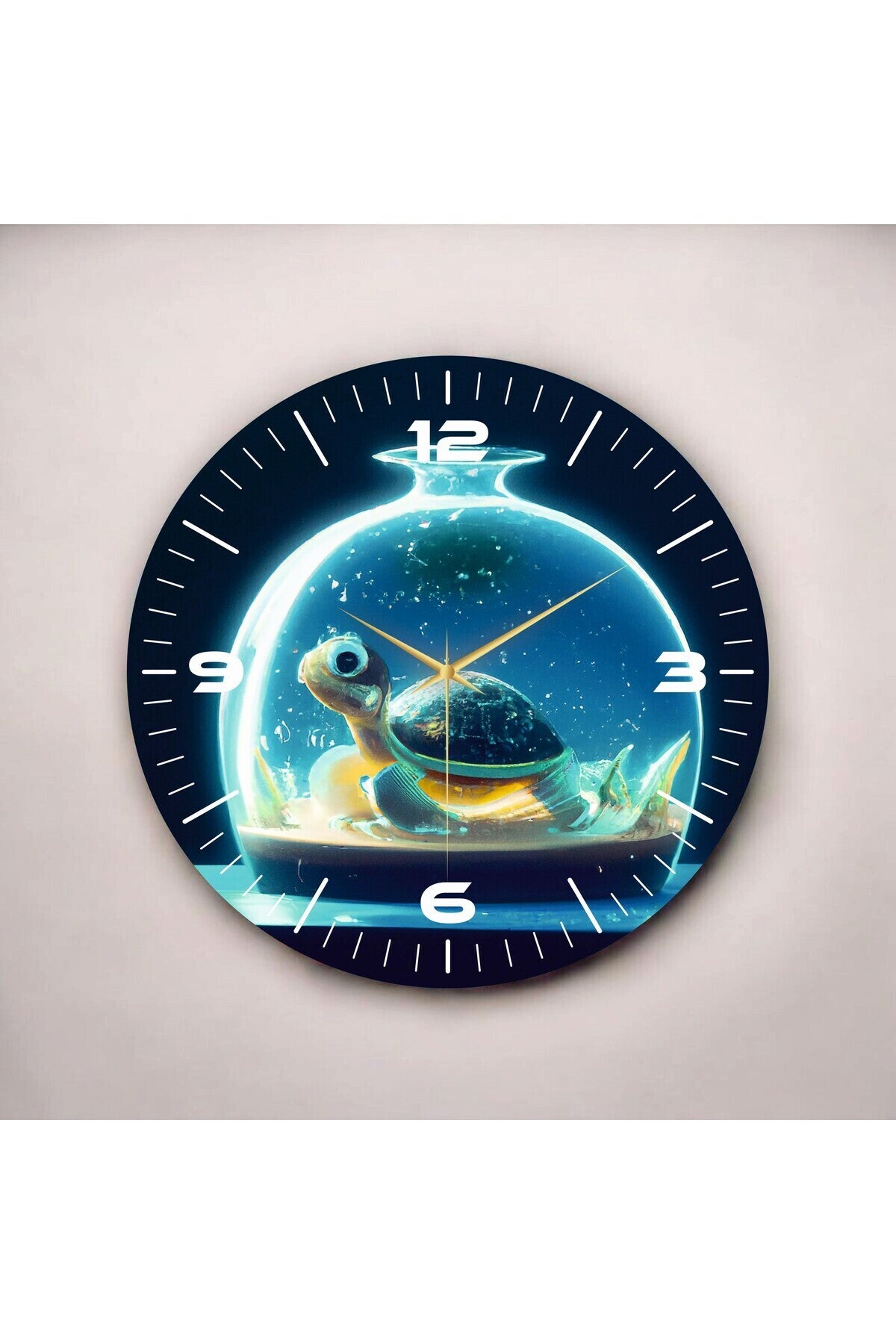 Renkli Baskı Kaplumbağa Desenli Sayılı Hediyelik Ahşap Sessiz Tablo Duvar Saati